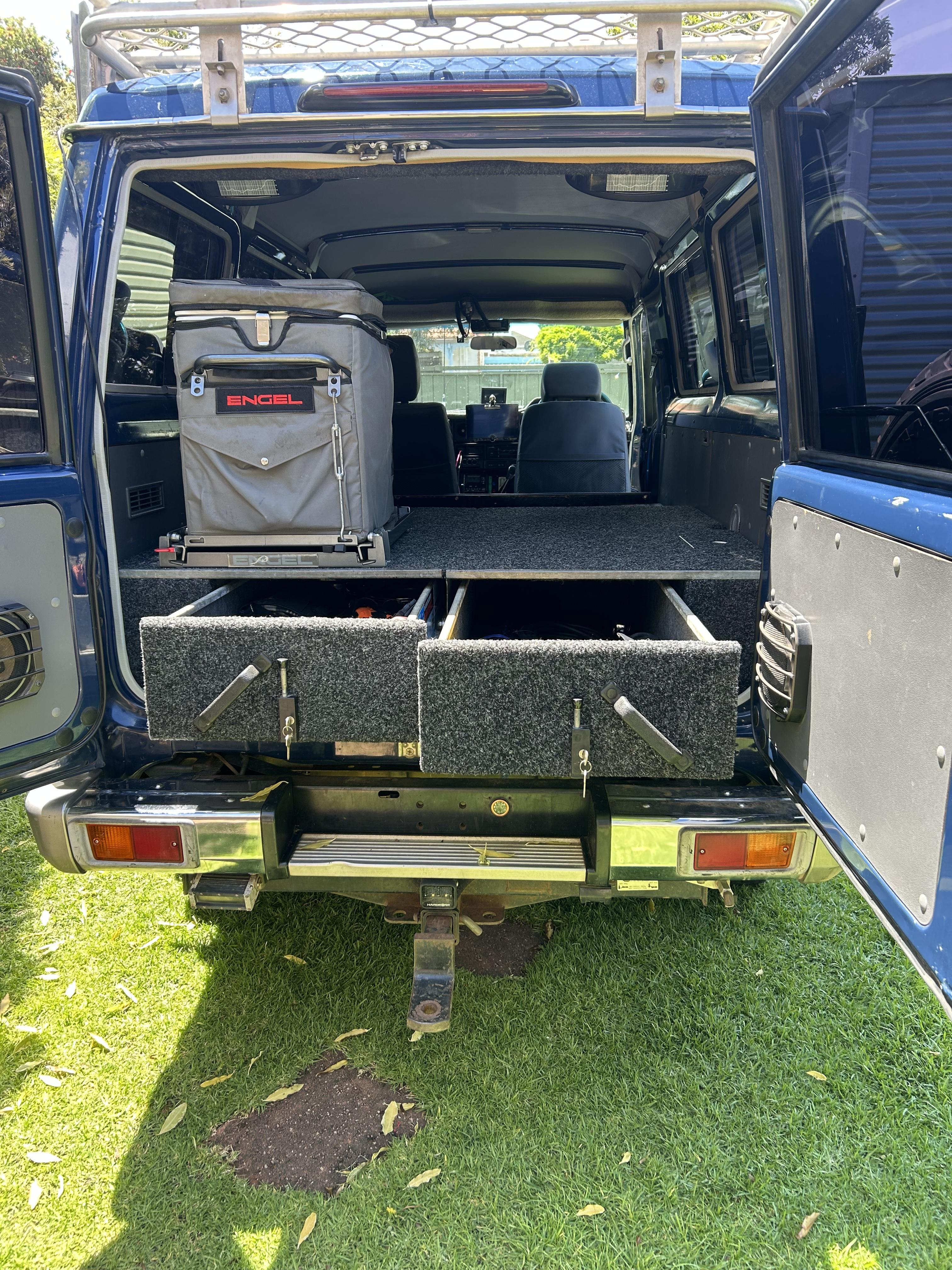 164,000 kms Excellent condition 50mm Lift 3 inch exhaust ARB front and rear diff locks ARB Air Compressor Underbody water tank and pump Rear sliding drawers Engel 39L fridge Solar panels and batteries Alloy roof rack Ken wood 6 speaker stereo 30 second swing around awning Front and rear cameras UHF radio.