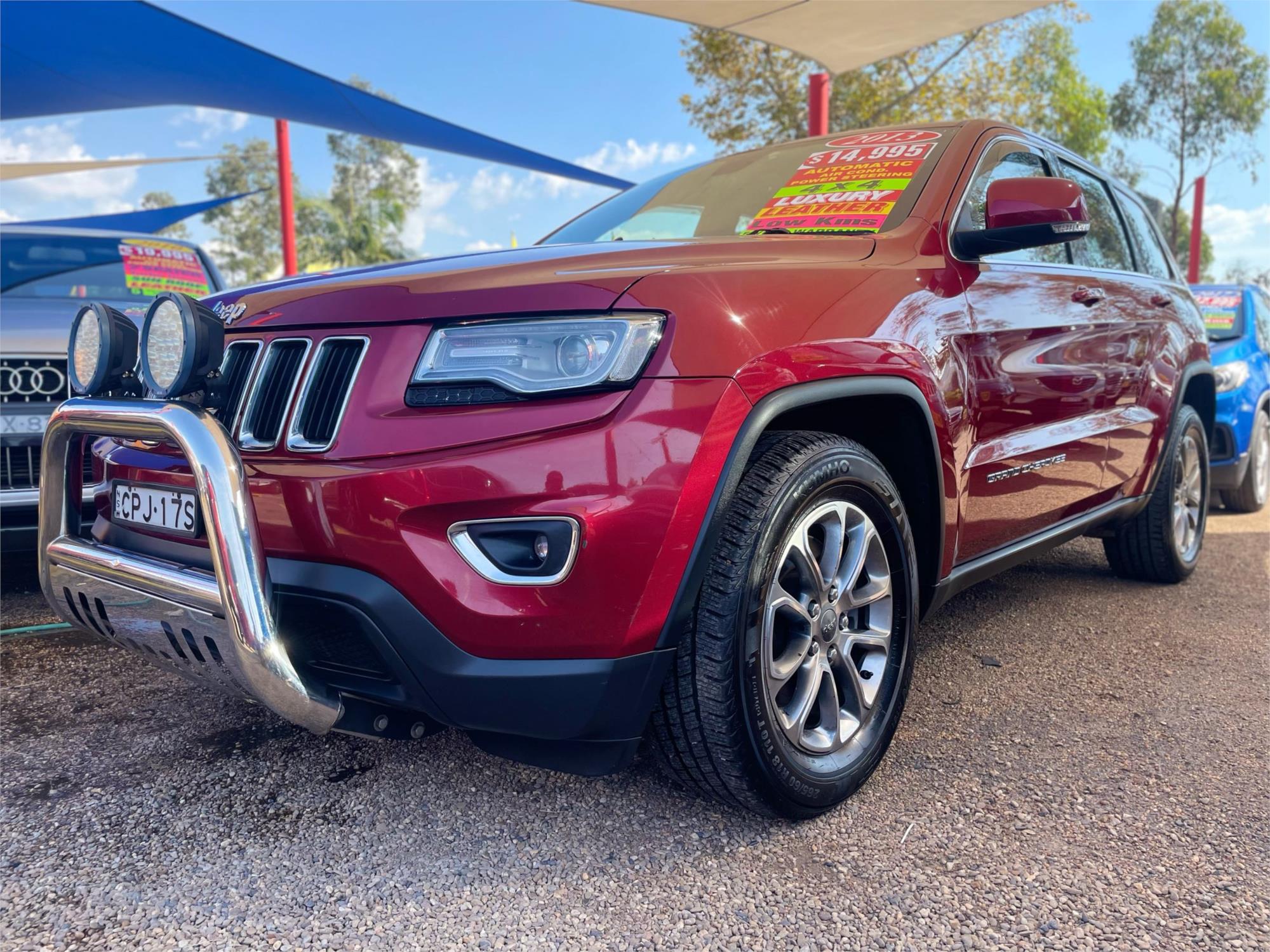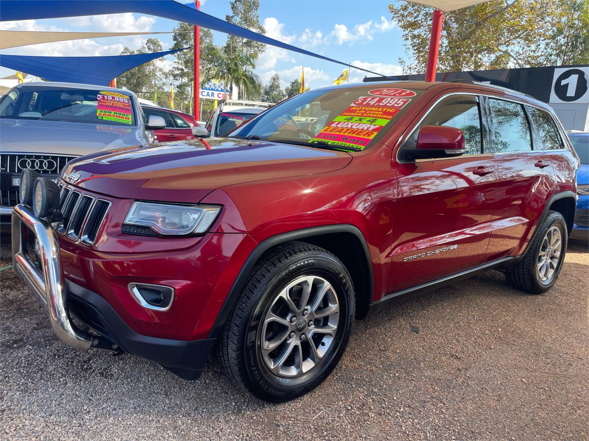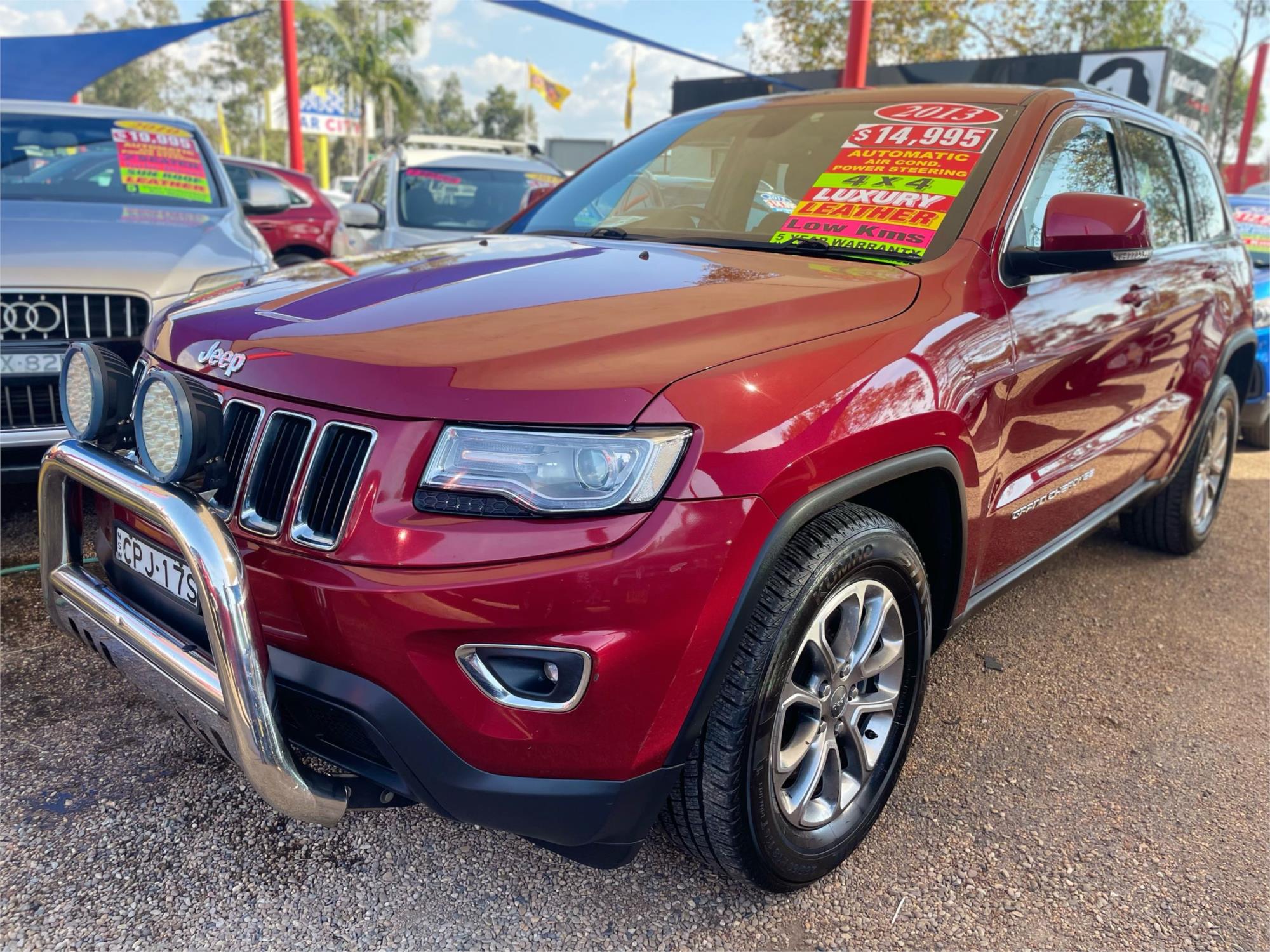 Looking for a reliable and well-equipped SUV that won't break the bank? Check out this 2013 Jeep Grand Cherokee Laredo Wagon for just $14,995! With a stunning RED ROCK CRYSTAL PEARL exterior and a sleek BLACK interior, this Jeep is sure to turn heads.