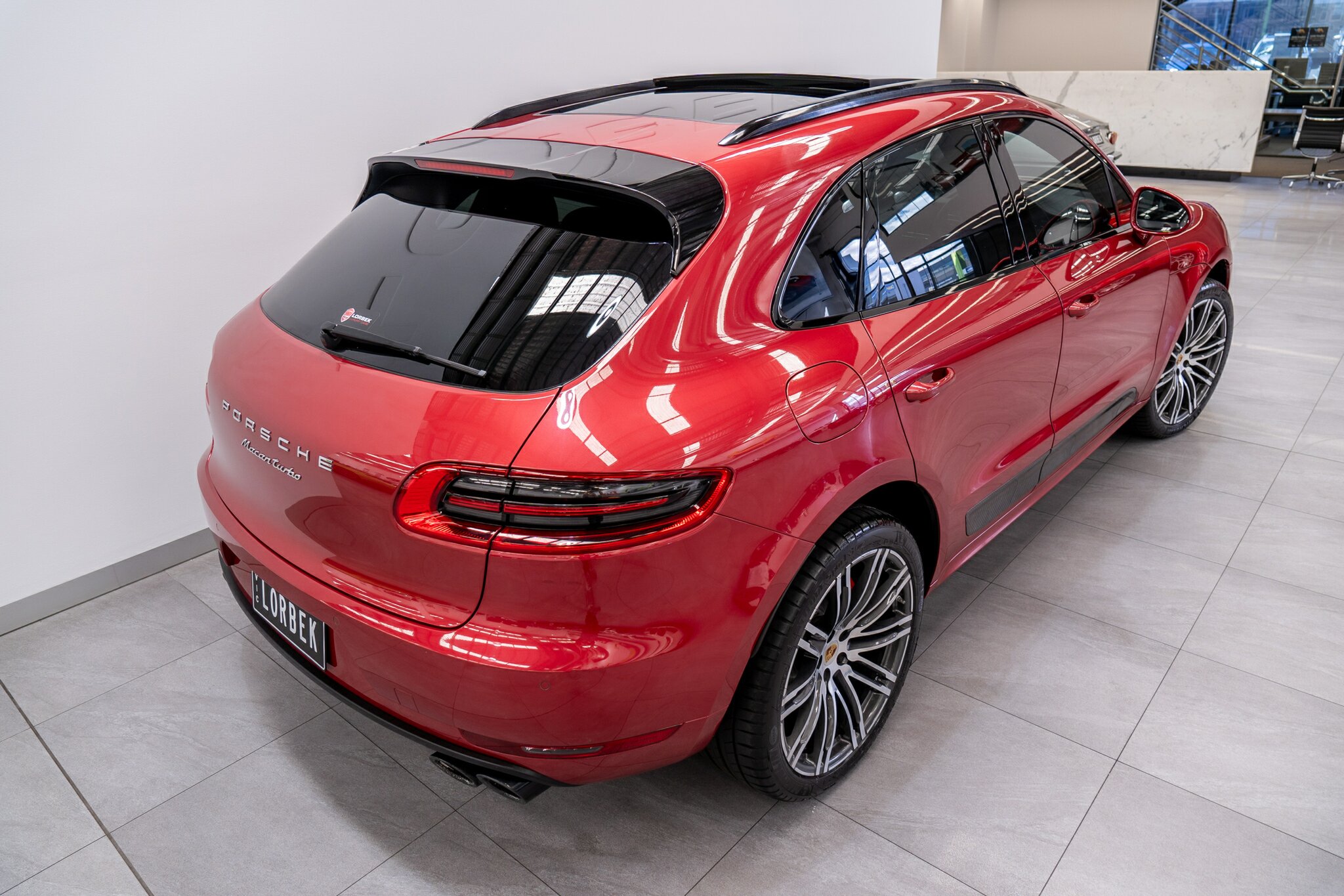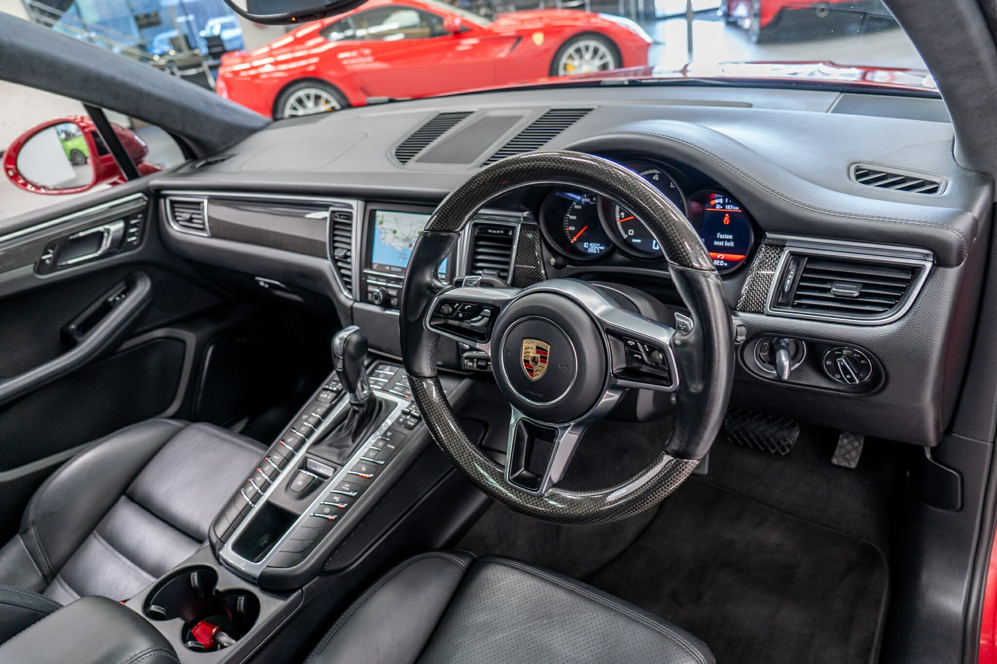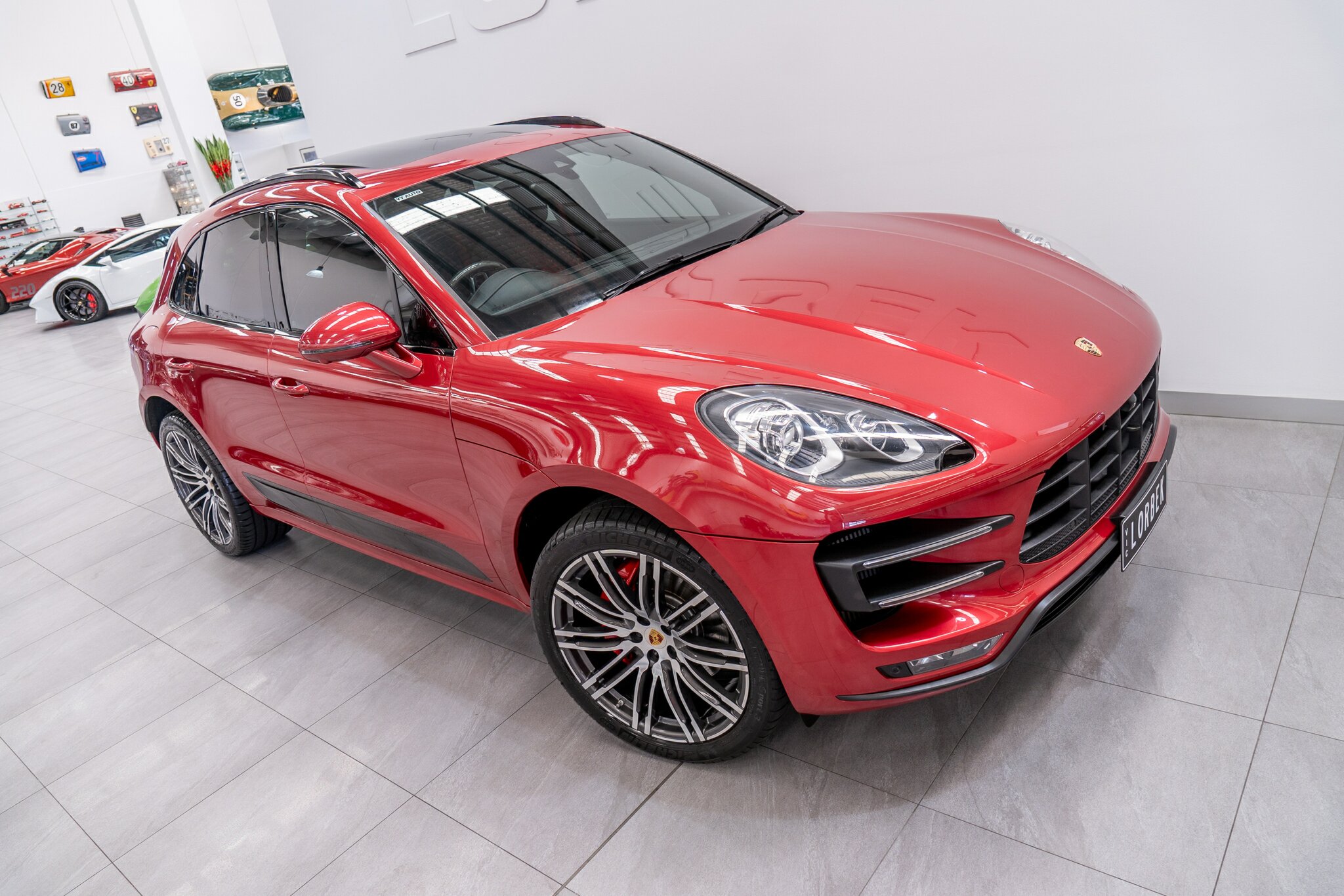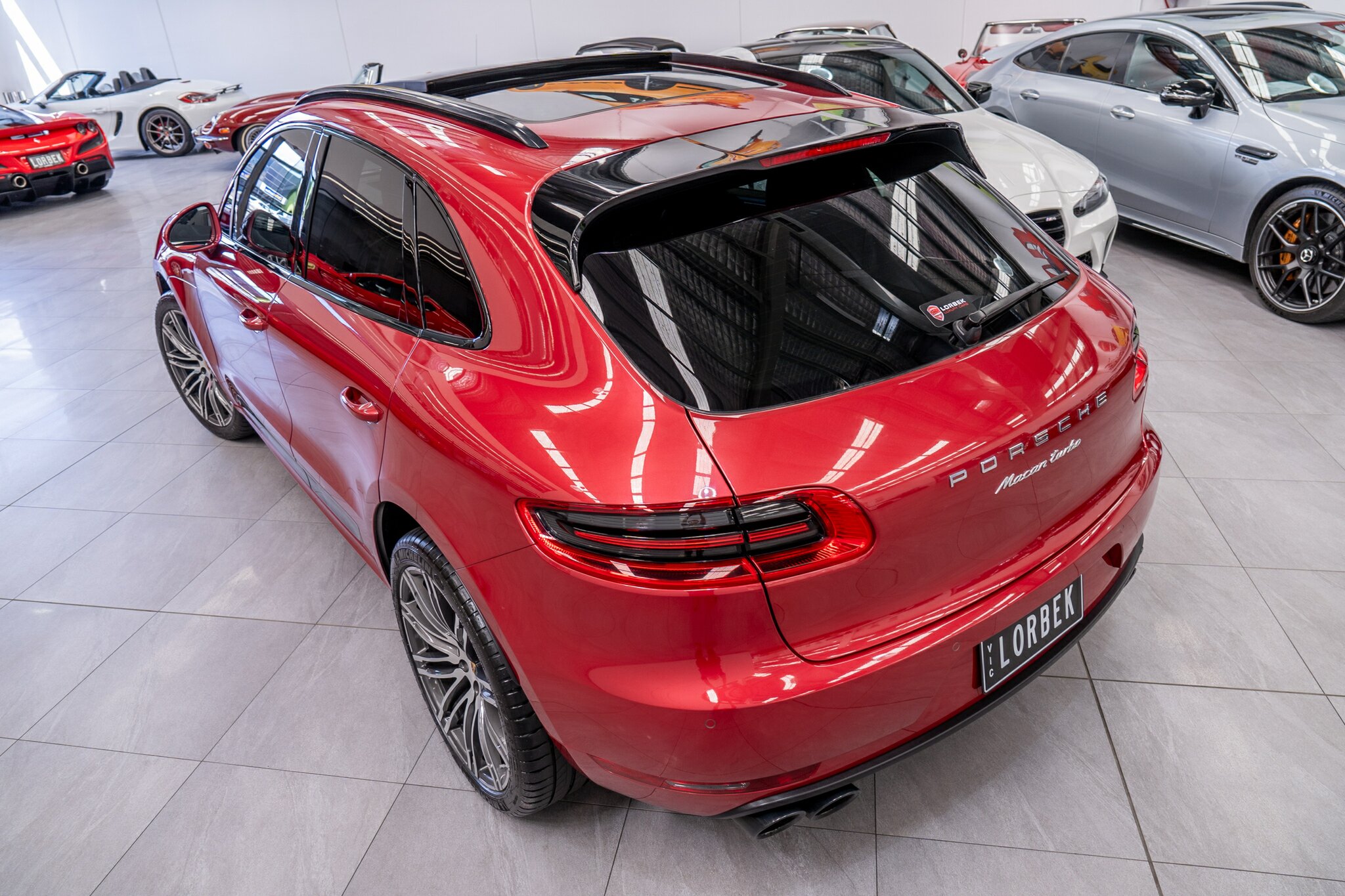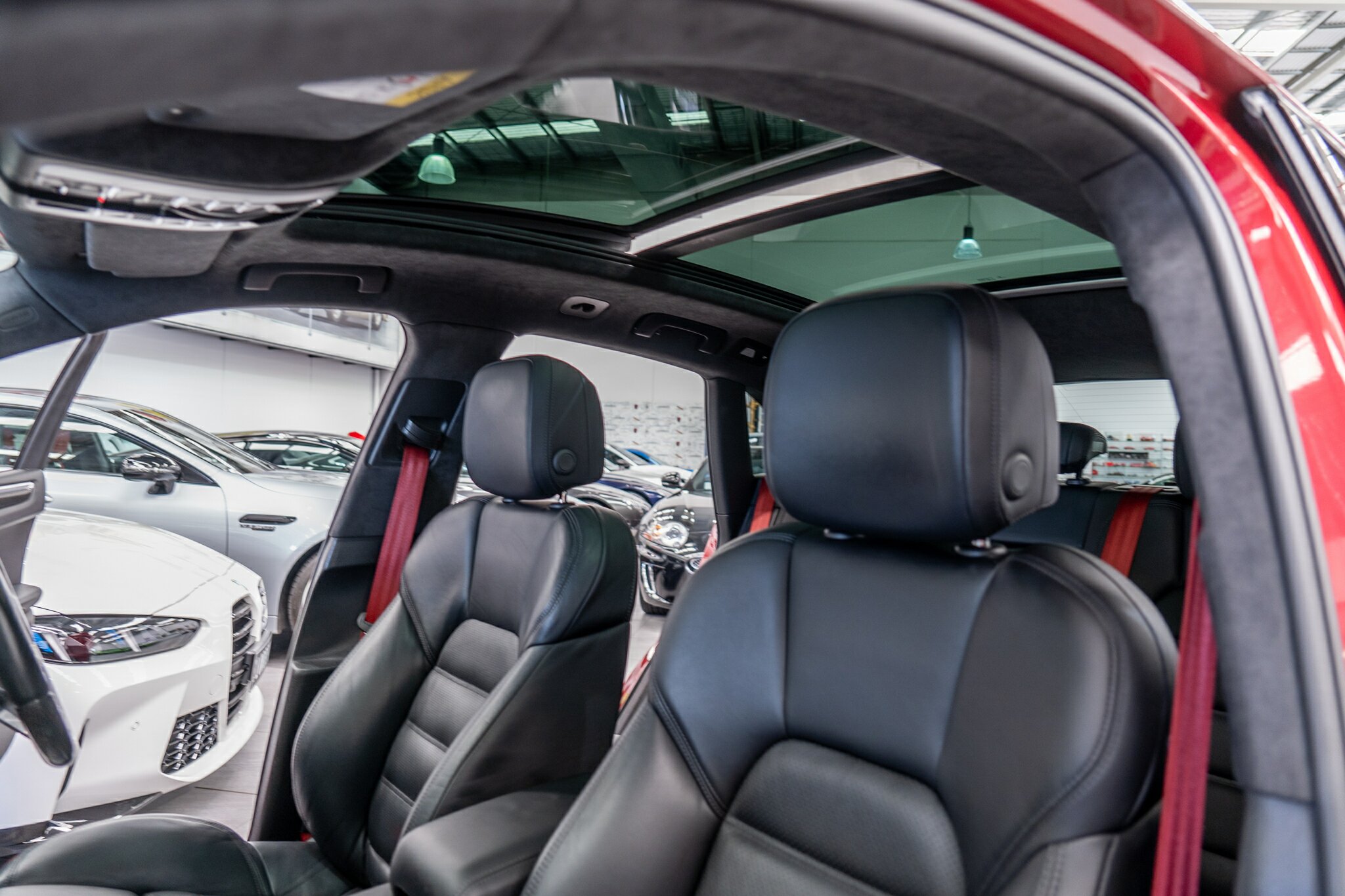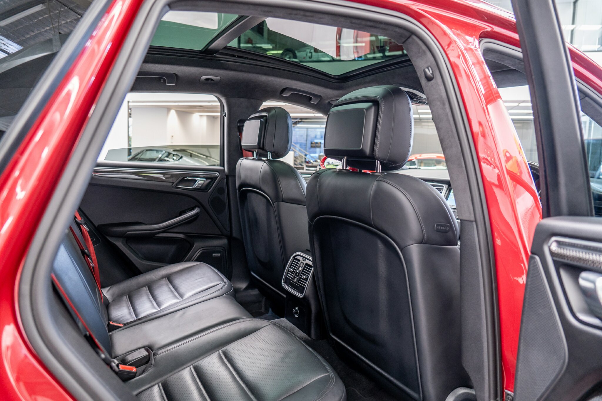 Porsche Macan TURBO 2015 (3.6L Twin-Turbo V6) MOST highly optioned with the most sought after Porsche exlcusive options, Panoramic glass sunroof, full carbon fibre interior package, exterior side blade in carbon fibre and Monochrome black exterior package. Finished in the most stunning bespoke rare special order Impulse Red metallic with full soft touch ash black leather interior package with extended leather package ( leather dash and door cards ), double stitching throughout, carbon fibre interior trim finishes, Garnet Red seat belts and much more.