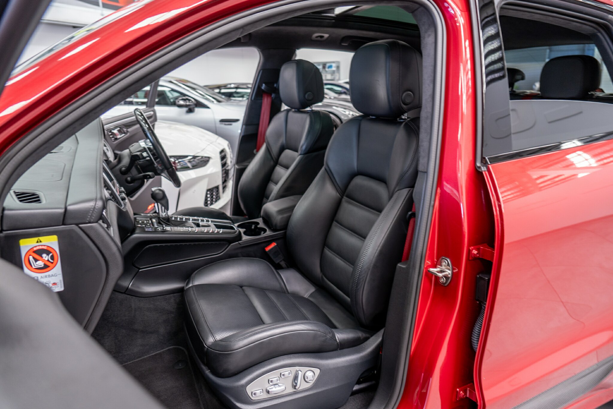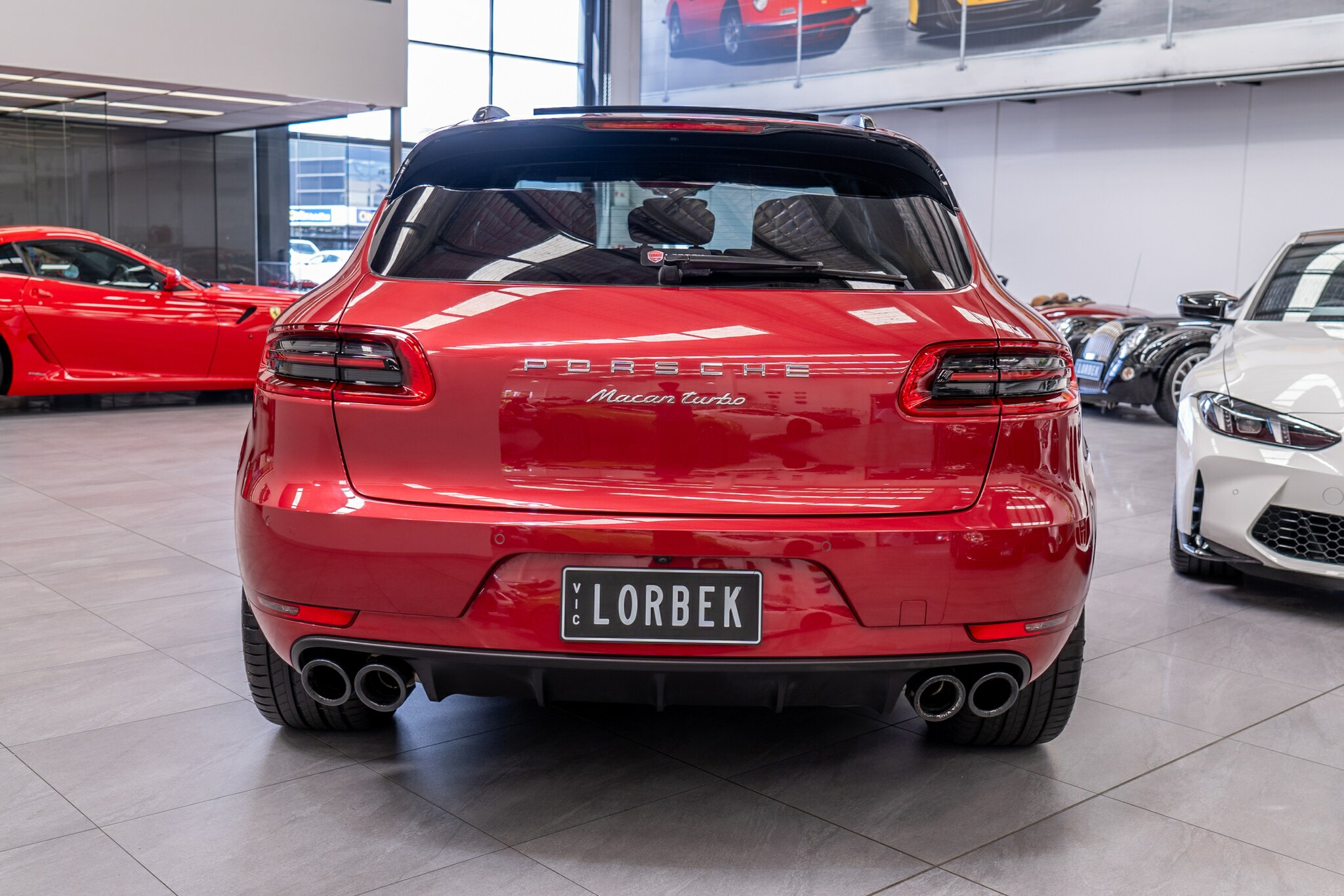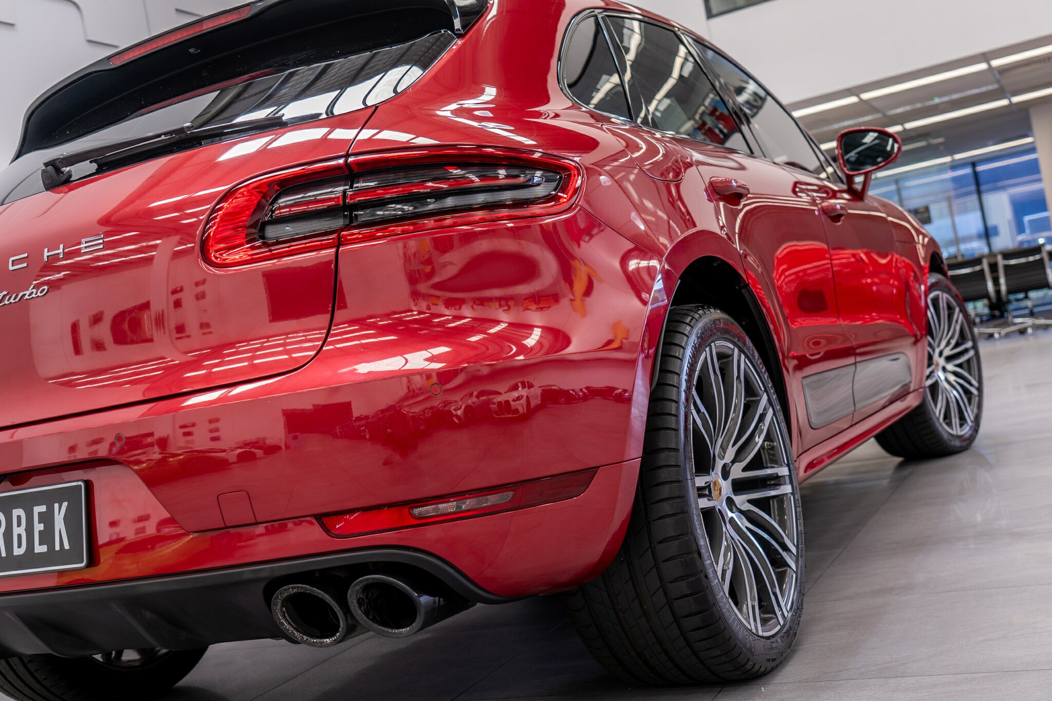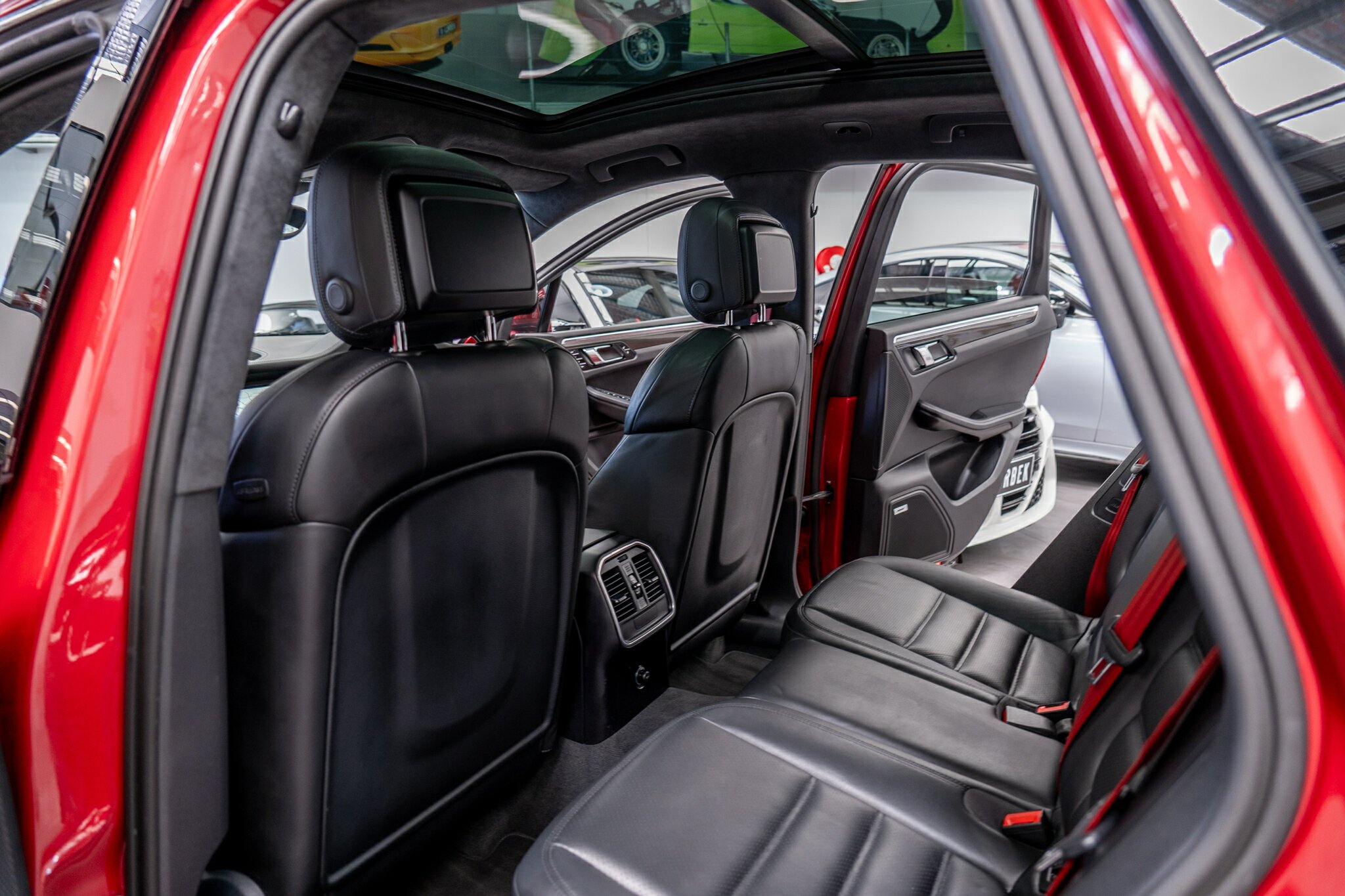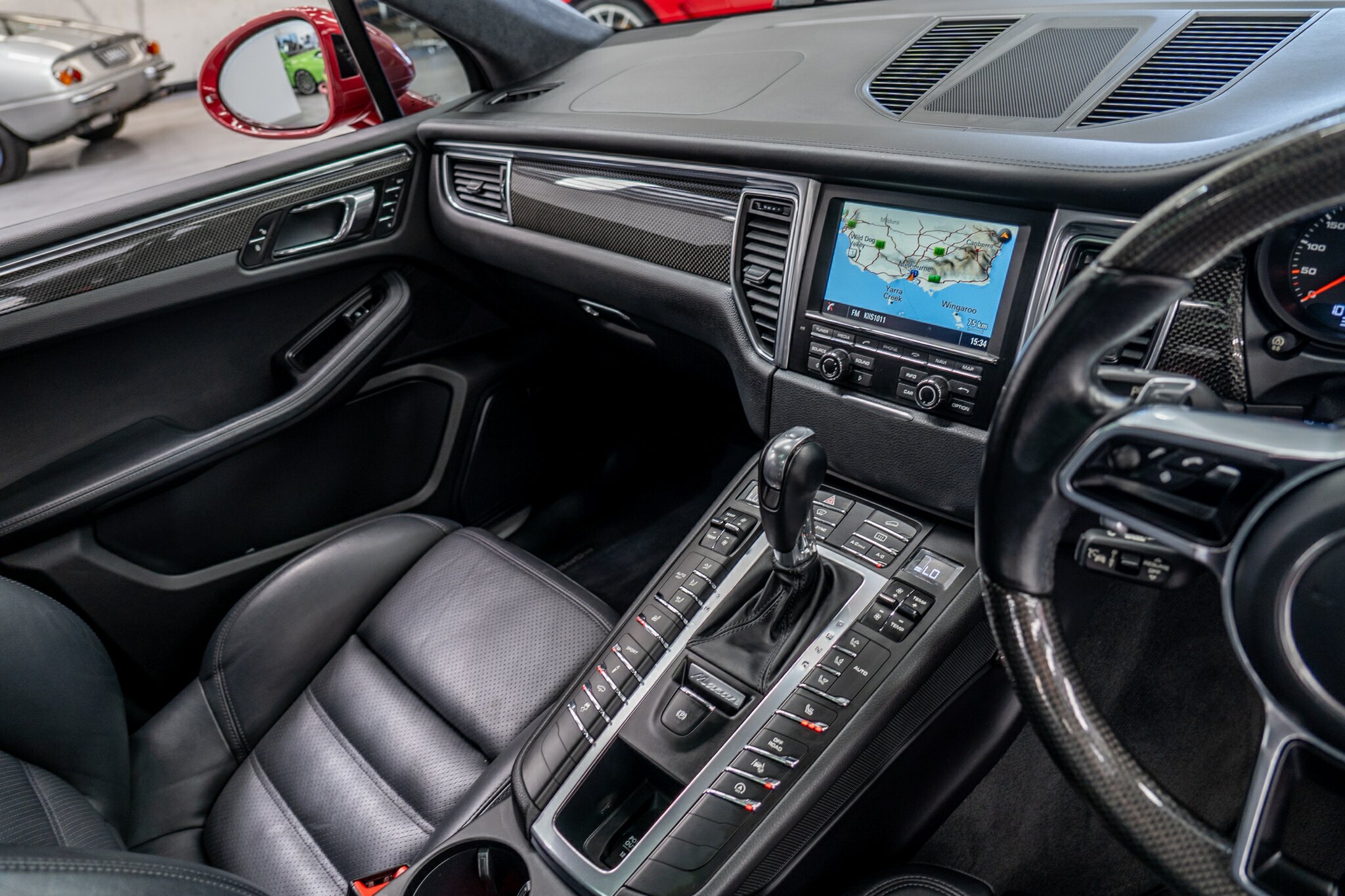 Porsche Macan TURBO 2015 (3.6L Twin-Turbo V6) MOST highly optioned with the most sought after Porsche exlcusive options, Panoramic glass sunroof, full carbon fibre interior package, exterior side blade in carbon fibre and Monochrome black exterior package. Finished in the most stunning bespoke rare special order Impulse Red metallic with full soft touch ash black leather interior package with extended leather package ( leather dash and door cards ), double stitching throughout, carbon fibre interior trim finishes, Garnet Red seat belts and much more.