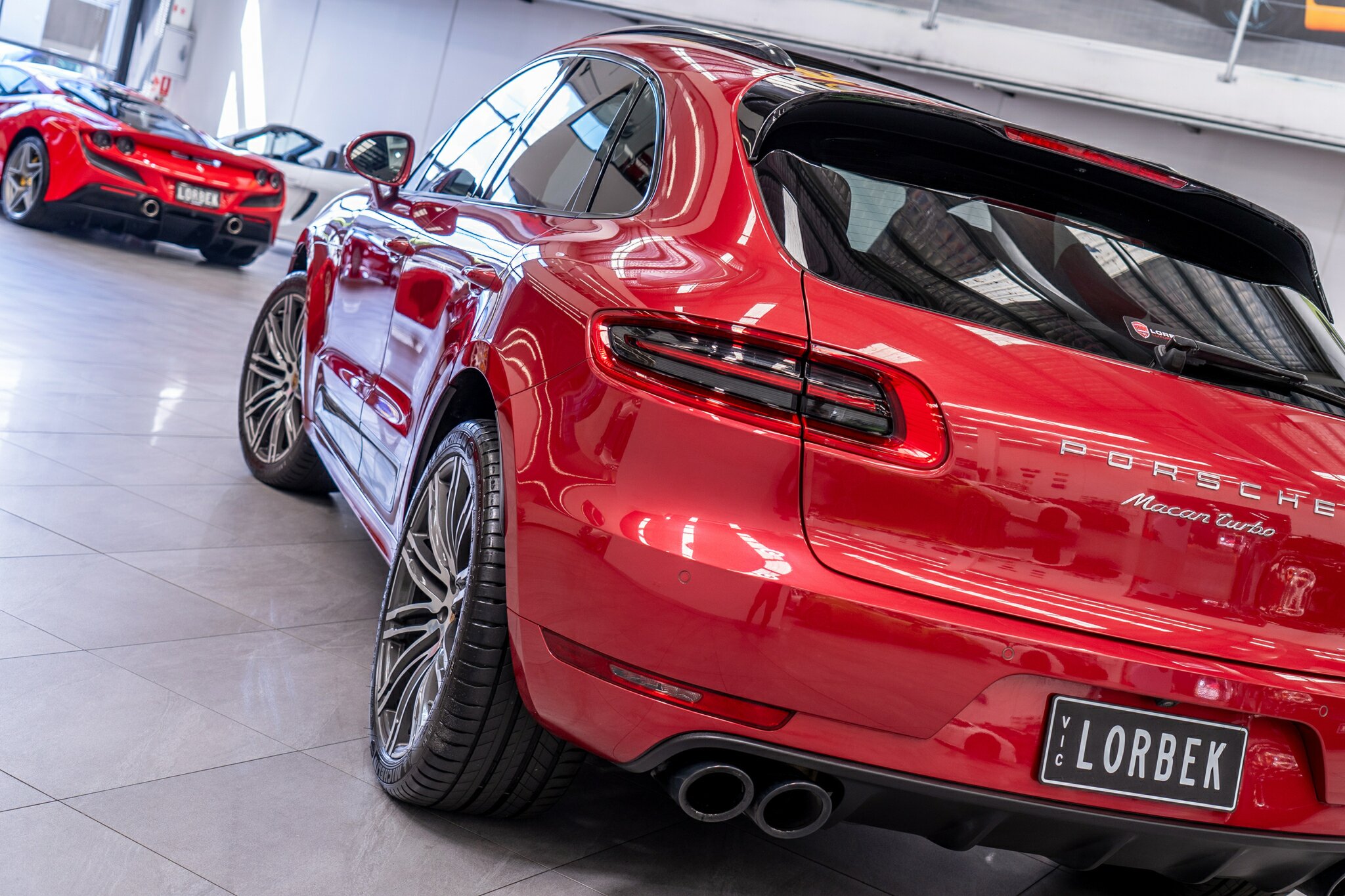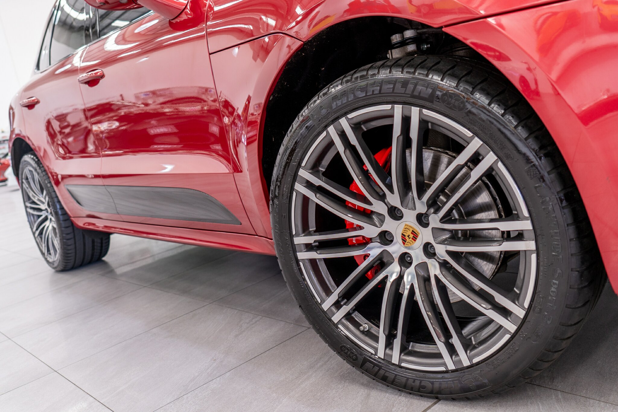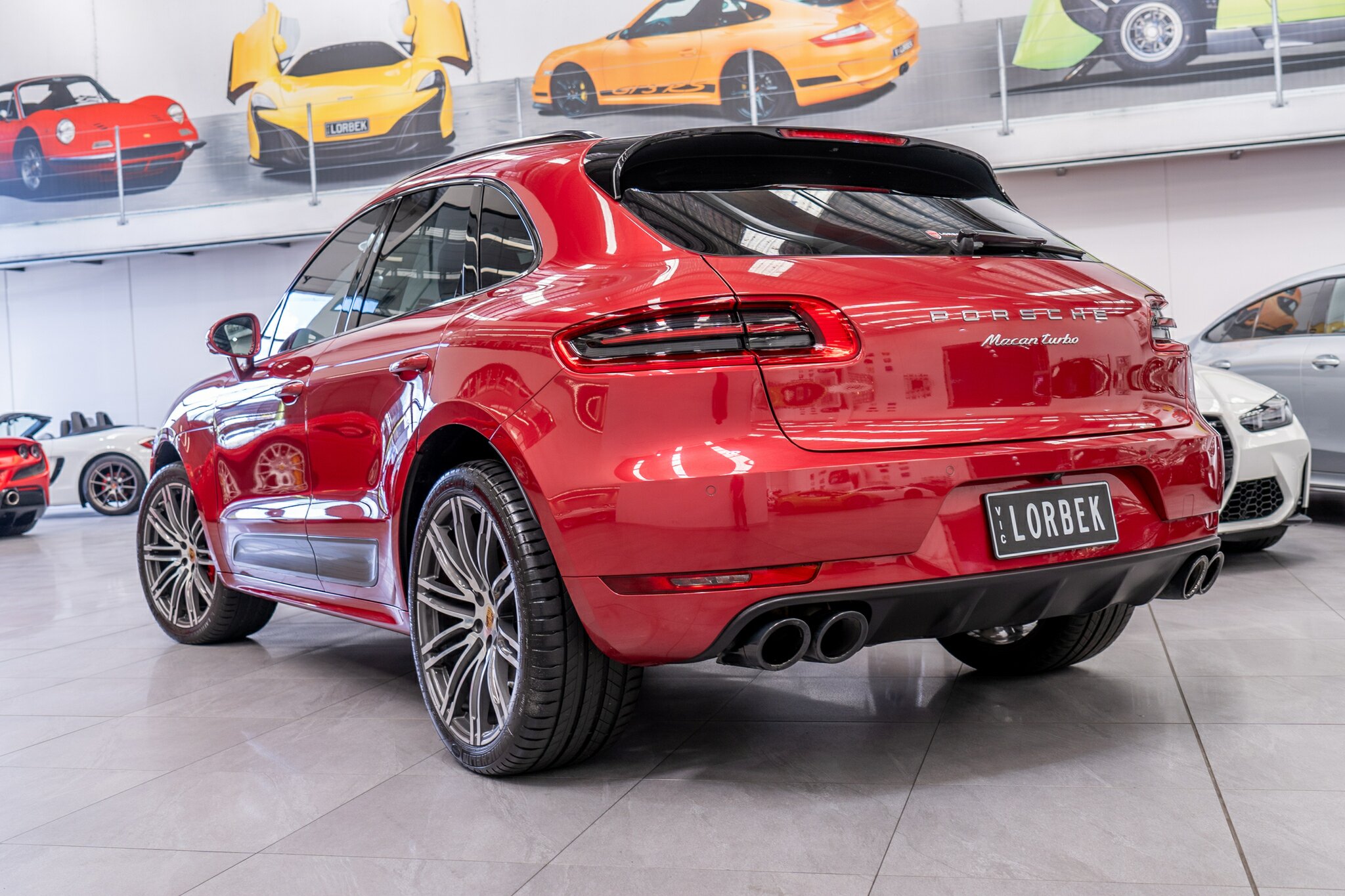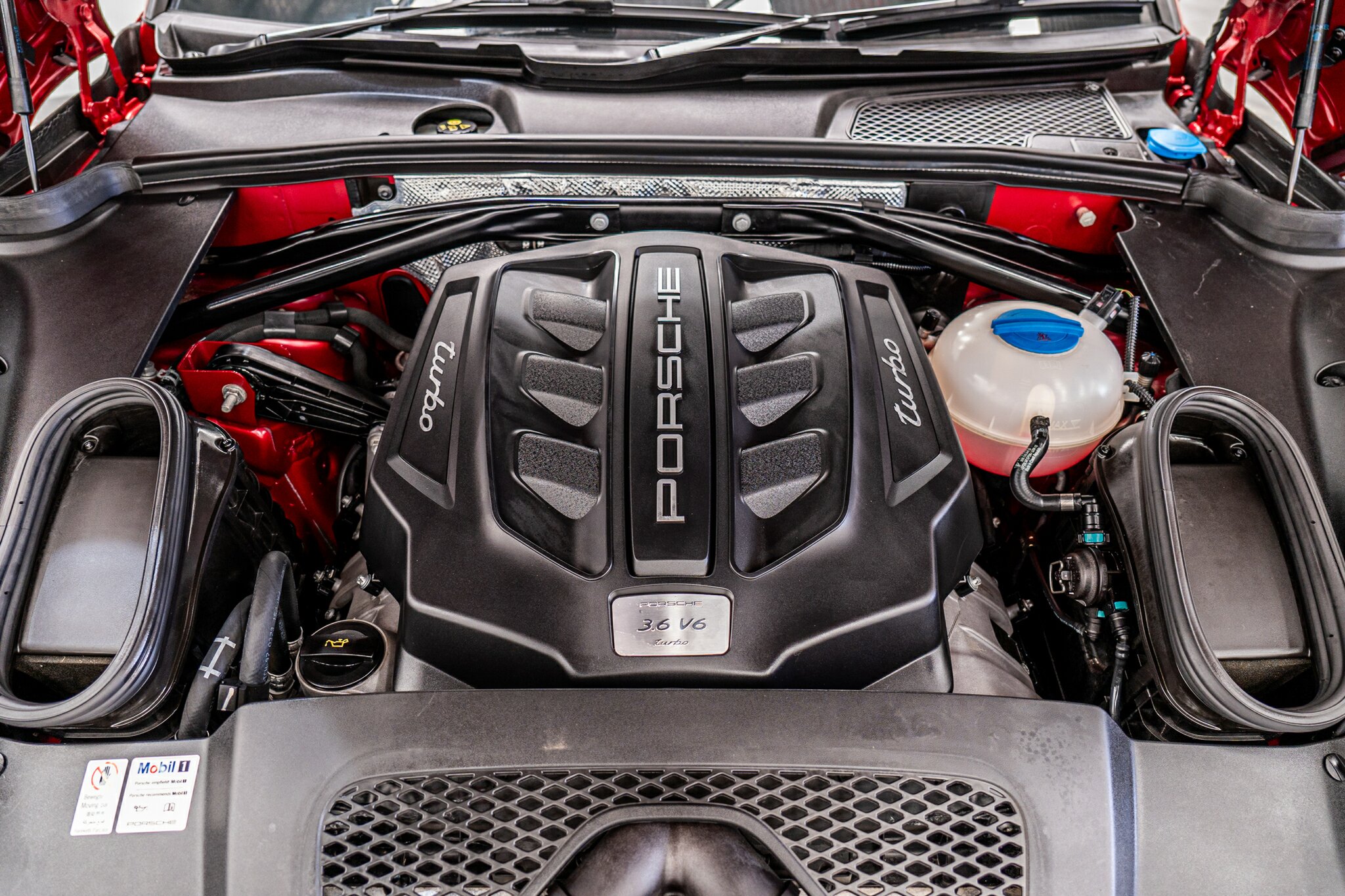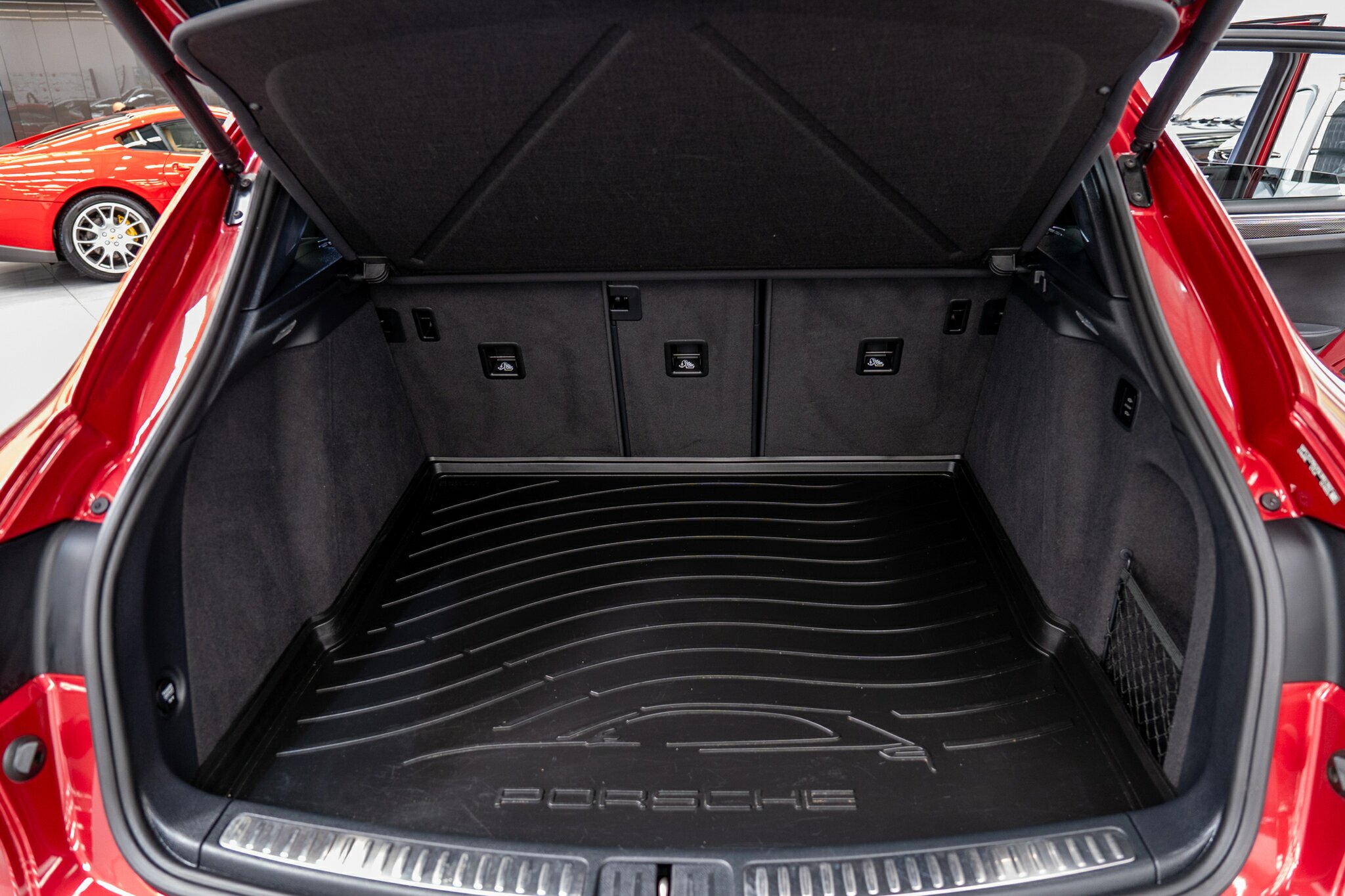 Porsche Macan TURBO 2015 (3.6L Twin-Turbo V6) MOST highly optioned with the most sought after Porsche exlcusive options, Panoramic glass sunroof, full carbon fibre interior package, exterior side blade in carbon fibre and Monochrome black exterior package. Finished in the most stunning bespoke rare special order Impulse Red metallic with full soft touch ash black leather interior package with extended leather package ( leather dash and door cards ), double stitching throughout, carbon fibre interior trim finishes, Garnet Red seat belts and much more.