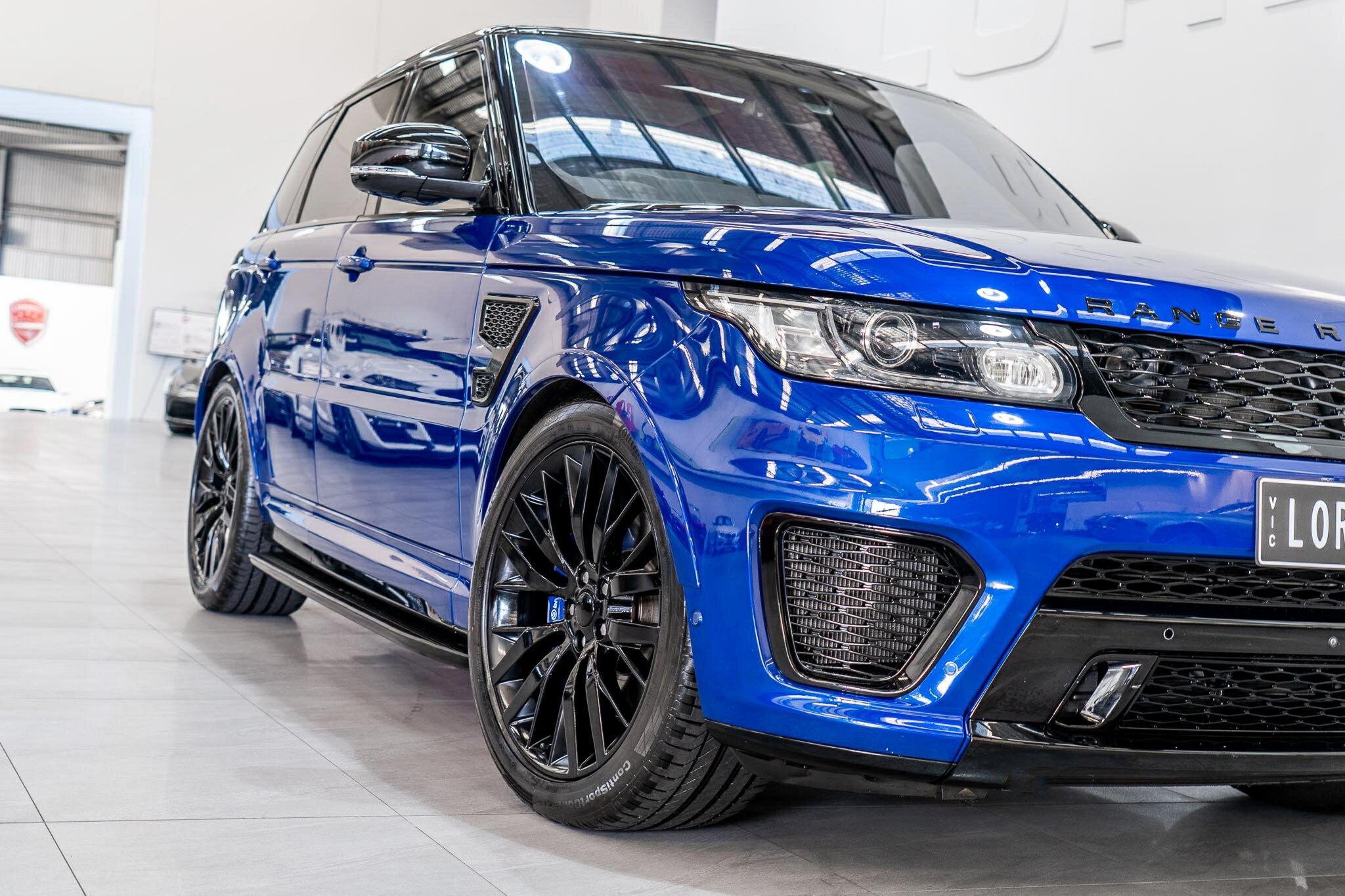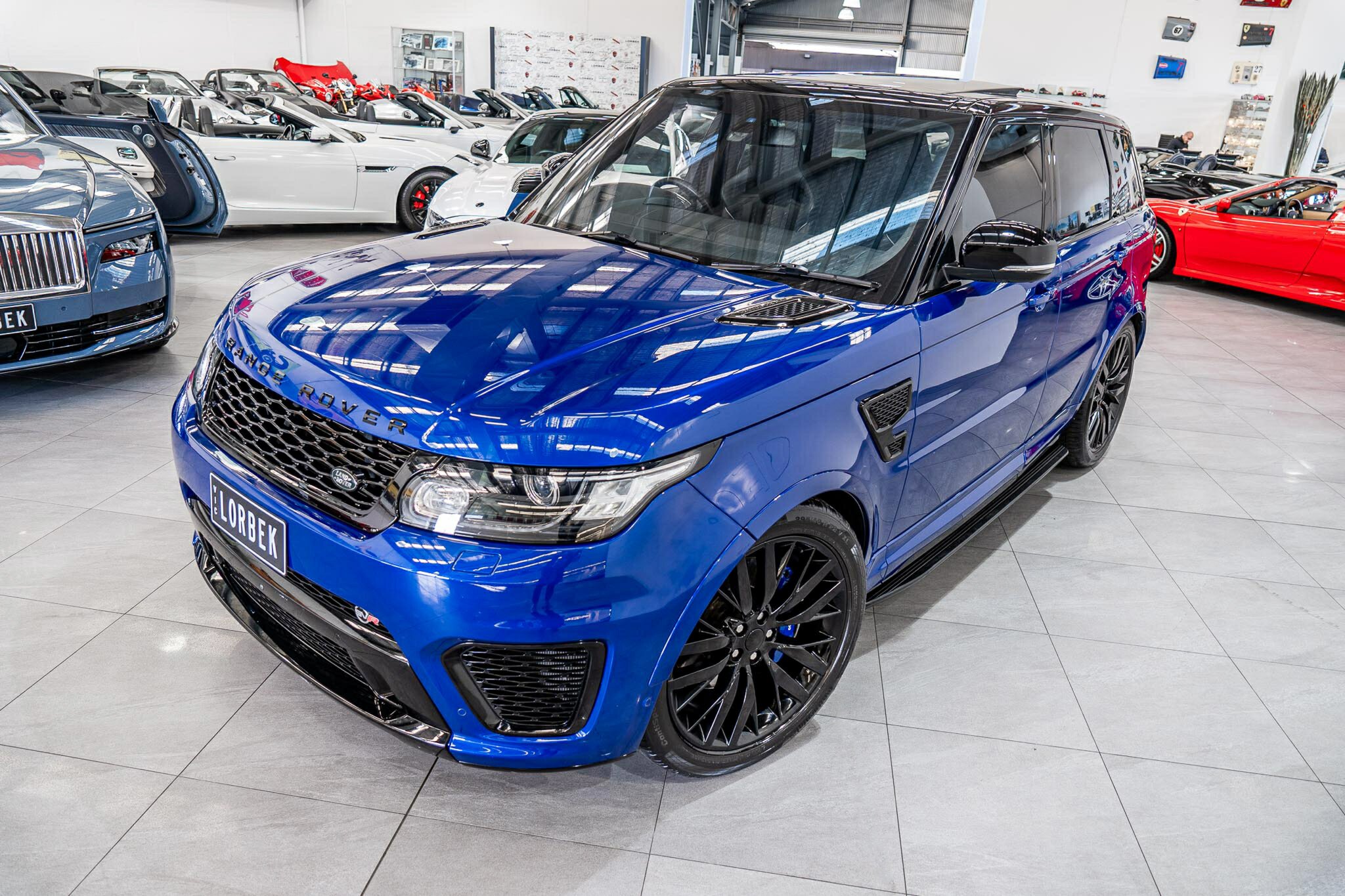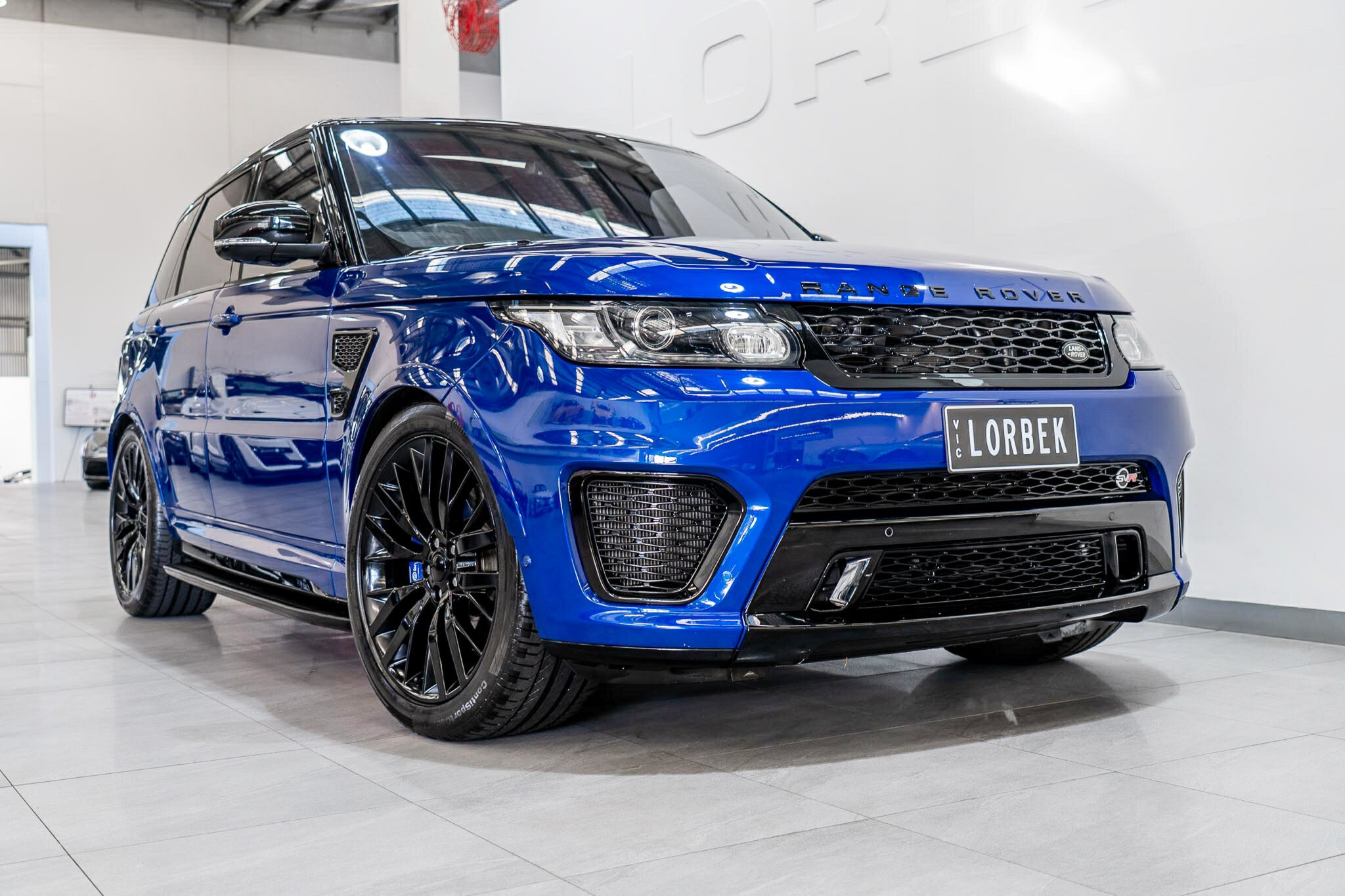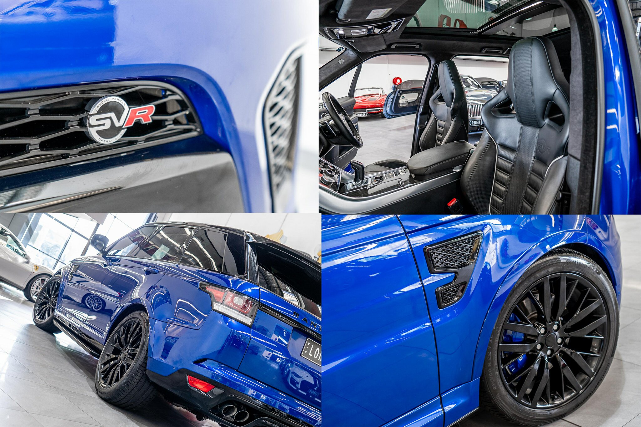 RANGE ROVER SPORT SVR 5.0L SUPERCHARGED 2016 ( 404kw / 680Nm ), TOP OF THE RANGE, travelled only 63,360km from new and still as in pristine car condition inside and out, garaged, stored undercover from new, sparingly driven. finished in the most desired and stunning ESTORIL BLUE, gloss black exterior package WITH BLACK BADGING, GRILL AND MIRRORS with soft touch ebony SVR leather interior and contrast white pipping with carbon fibre interior package, distinctive double stitching throughout and the most spectacular colour combination and so much more.