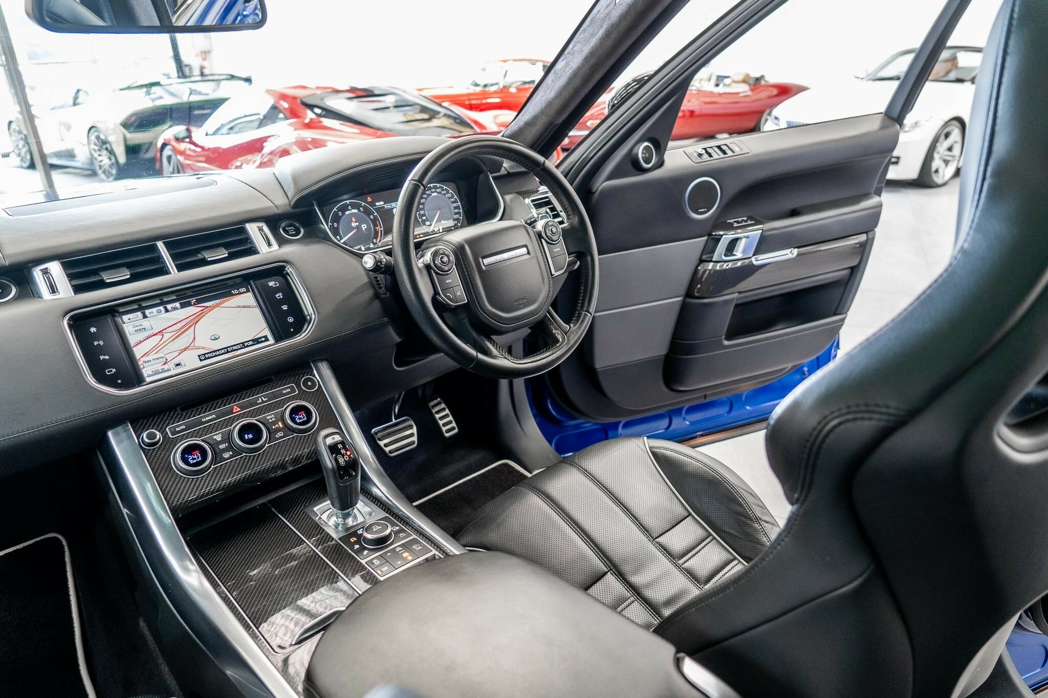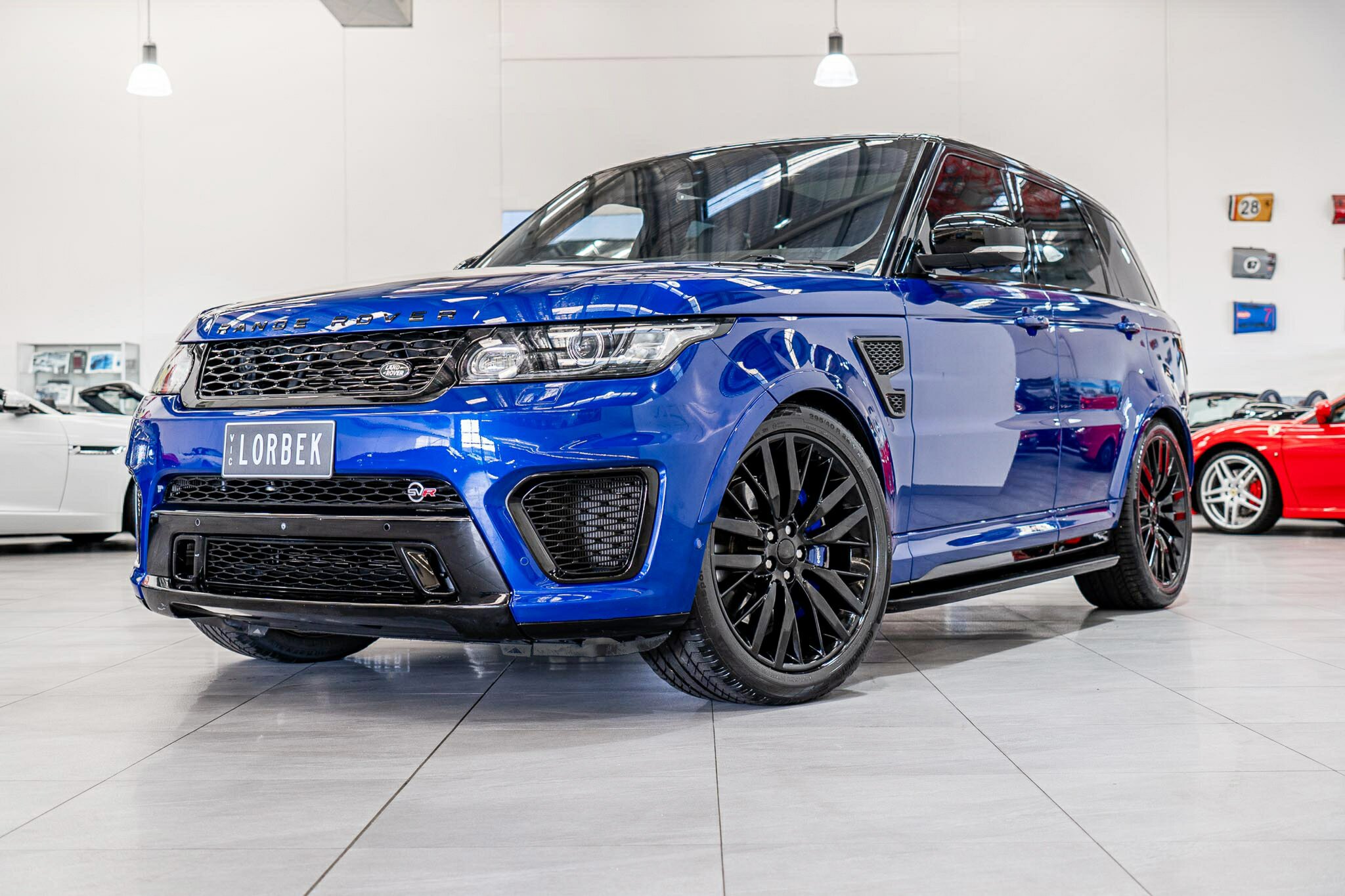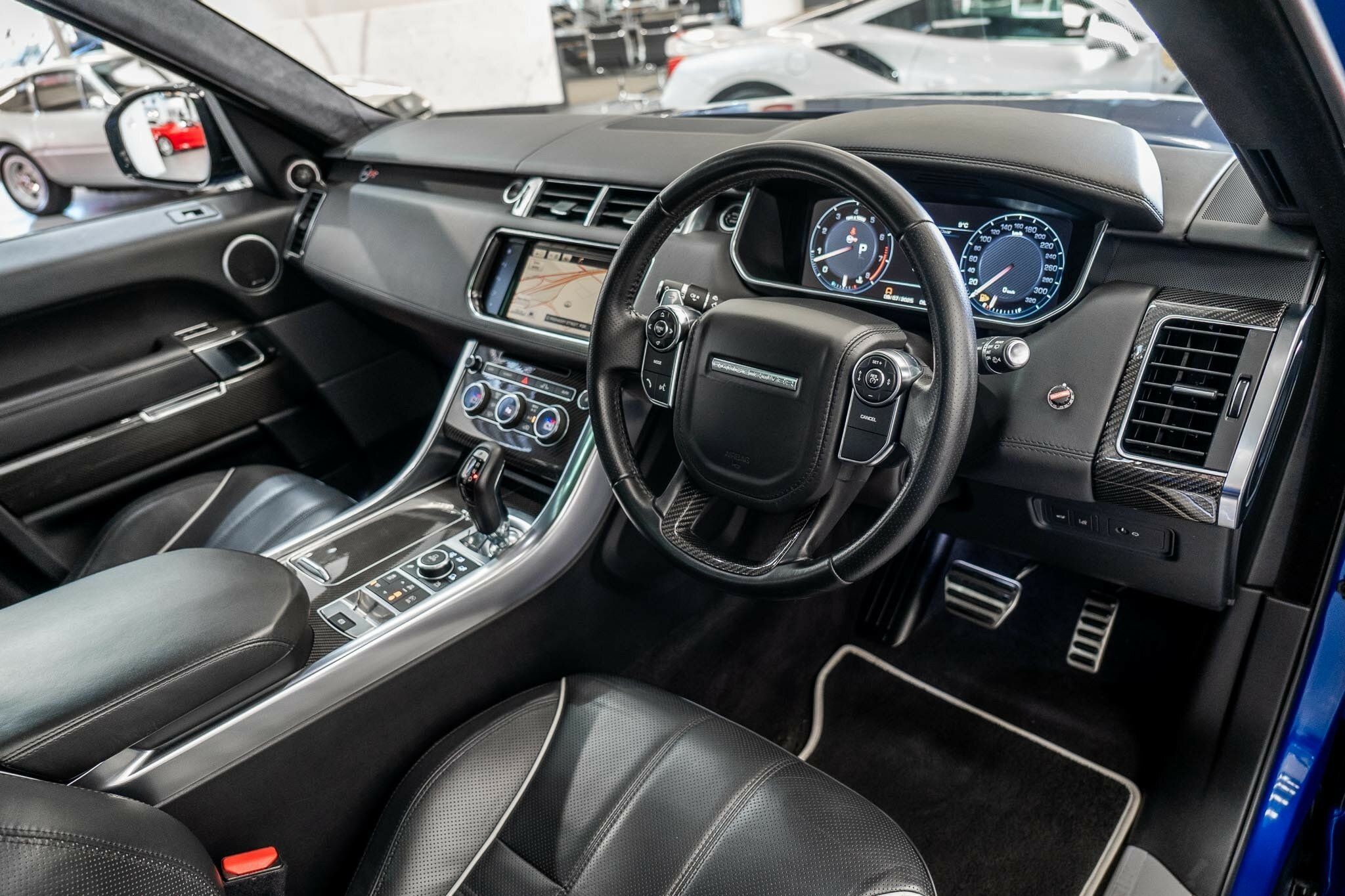 RANGE ROVER SPORT SVR 5.0L SUPERCHARGED 2016 ( 404kw / 680Nm ), TOP OF THE RANGE, travelled only 63,360km from new and still as in pristine car condition inside and out, garaged, stored undercover from new, sparingly driven. finished in the most desired and stunning ESTORIL BLUE, gloss black exterior package WITH BLACK BADGING, GRILL AND MIRRORS with soft touch ebony SVR leather interior and contrast white pipping with carbon fibre interior package, distinctive double stitching throughout and the most spectacular colour combination and so much more.