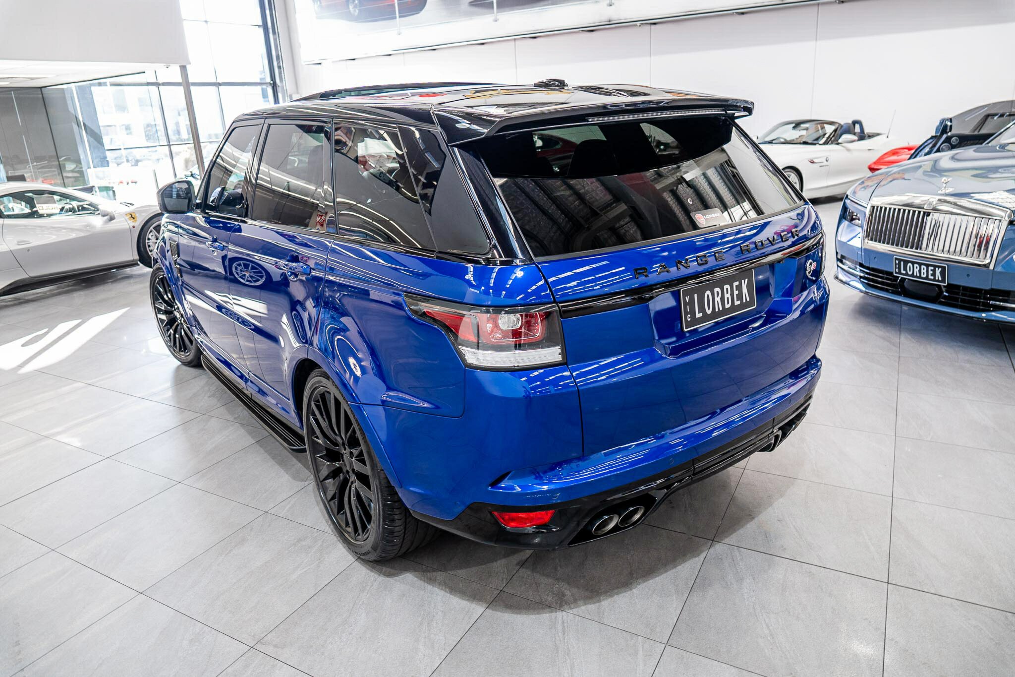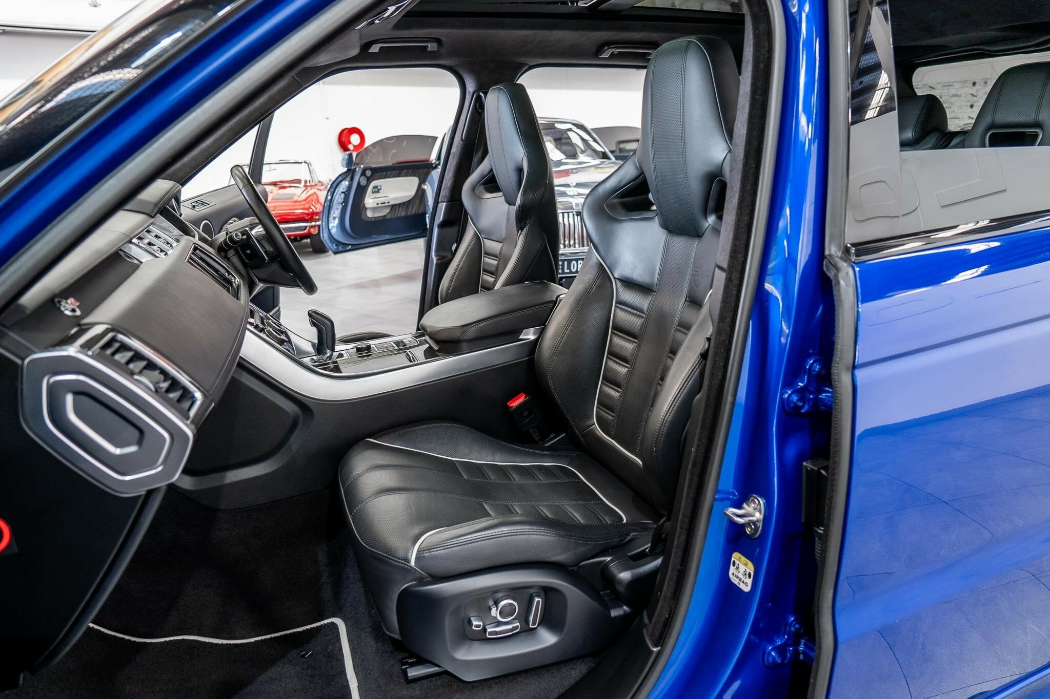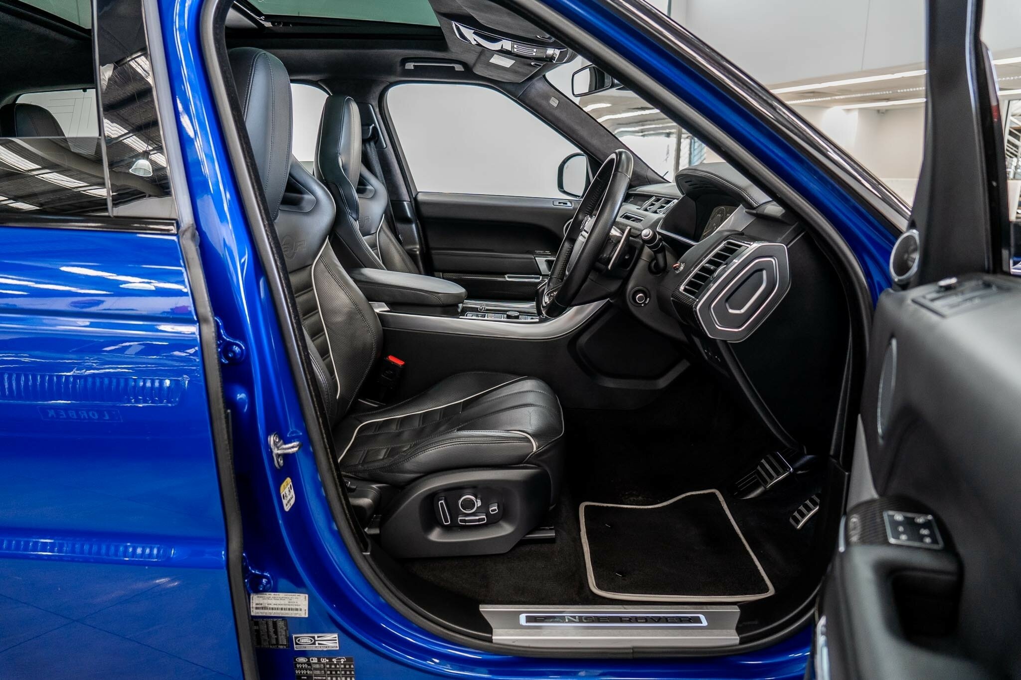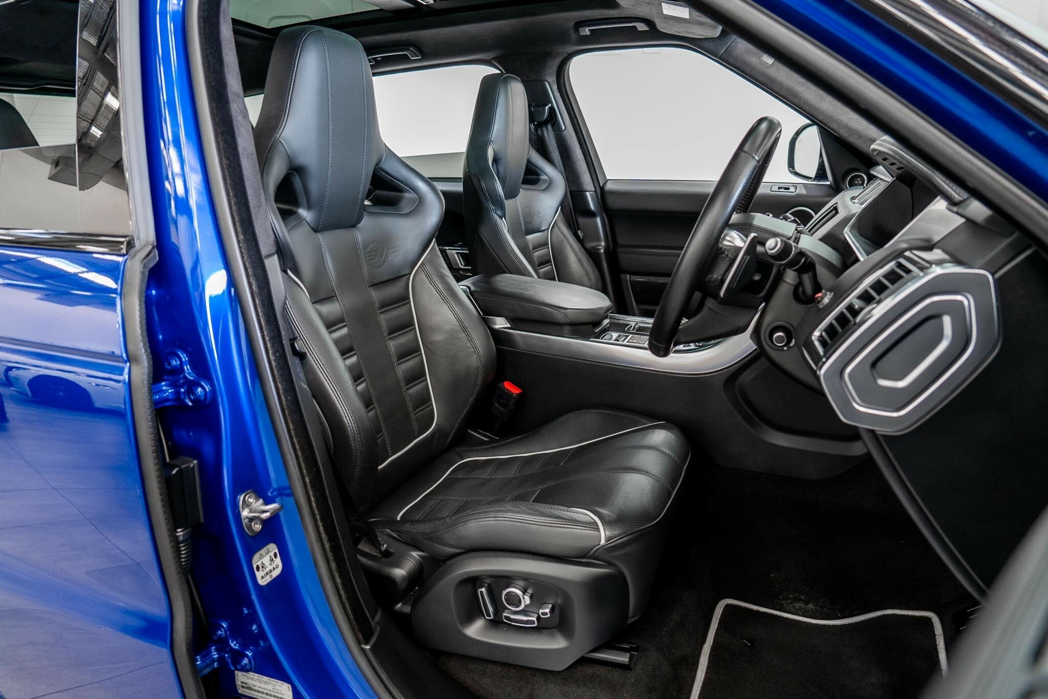 RANGE ROVER SPORT SVR 5.0L SUPERCHARGED 2016 ( 404kw / 680Nm ), TOP OF THE RANGE, travelled only 63,360km from new and still as in pristine car condition inside and out, garaged, stored undercover from new, sparingly driven. finished in the most desired and stunning ESTORIL BLUE, gloss black exterior package WITH BLACK BADGING, GRILL AND MIRRORS with soft touch ebony SVR leather interior and contrast white pipping with carbon fibre interior package, distinctive double stitching throughout and the most spectacular colour combination and so much more.