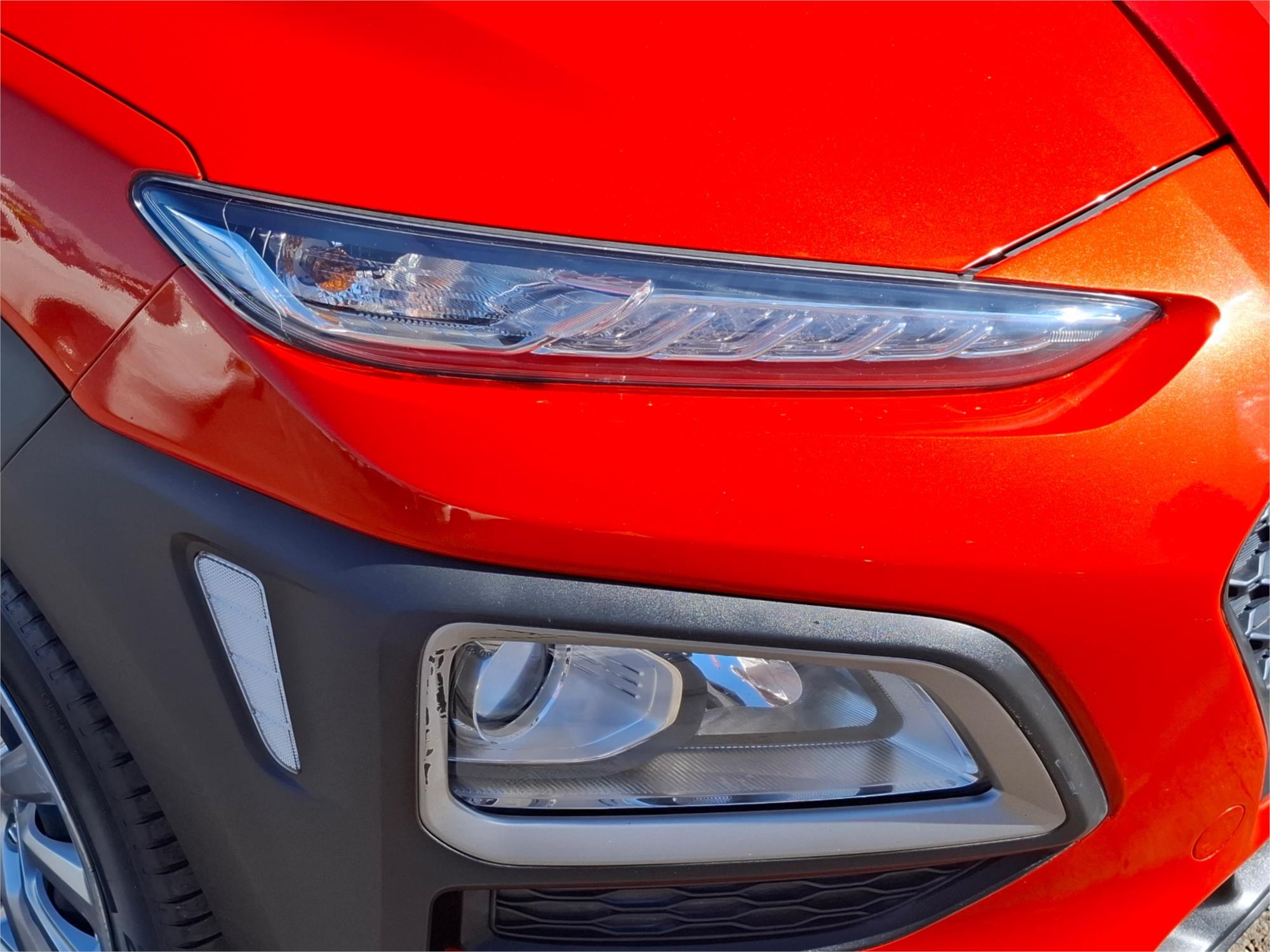 Introducing the vibrant and vivacious 2018 Hyundai Kona OS.2 Go Wagon, an automotive masterpiece that’s as bright and bold as the morning sun, or perhaps even your Aunt Marge's infamous orange marmalade. This stunning chariot of modern engineering is dressed to impress in a dazzling shade of orange—because why blend in when you were born to stand out?