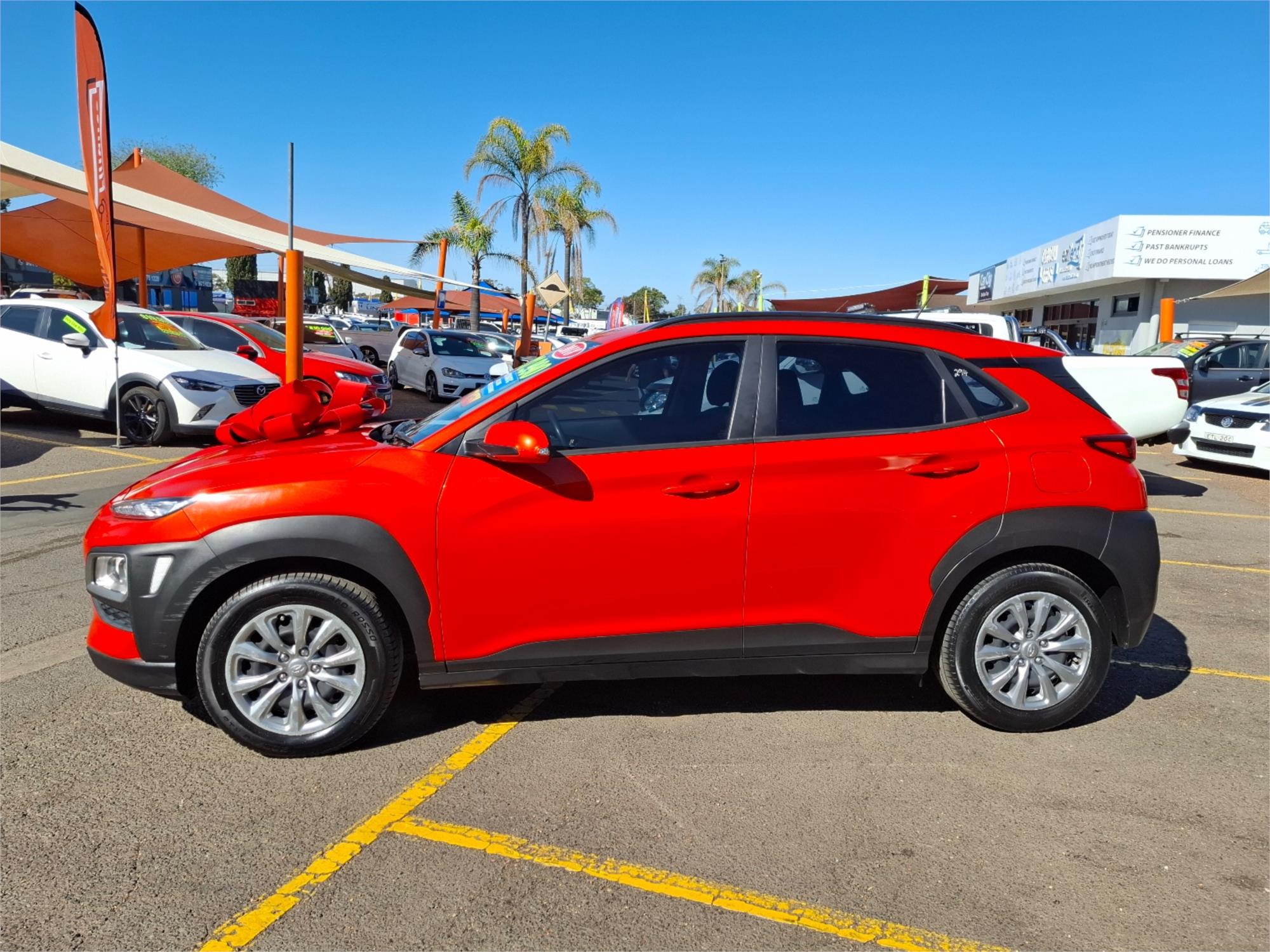 Thinking of parting ways with your old ride? We gladly accept trade-ins. Rest assured, this Kona comes with a clear title, so there are no hidden secrets lurking beneath its glossy orange surface. Interested in a test drive? Of course, you are! Just remember to book an appointment because we like to keep things as exclusive as a VIP nightclub entrance.