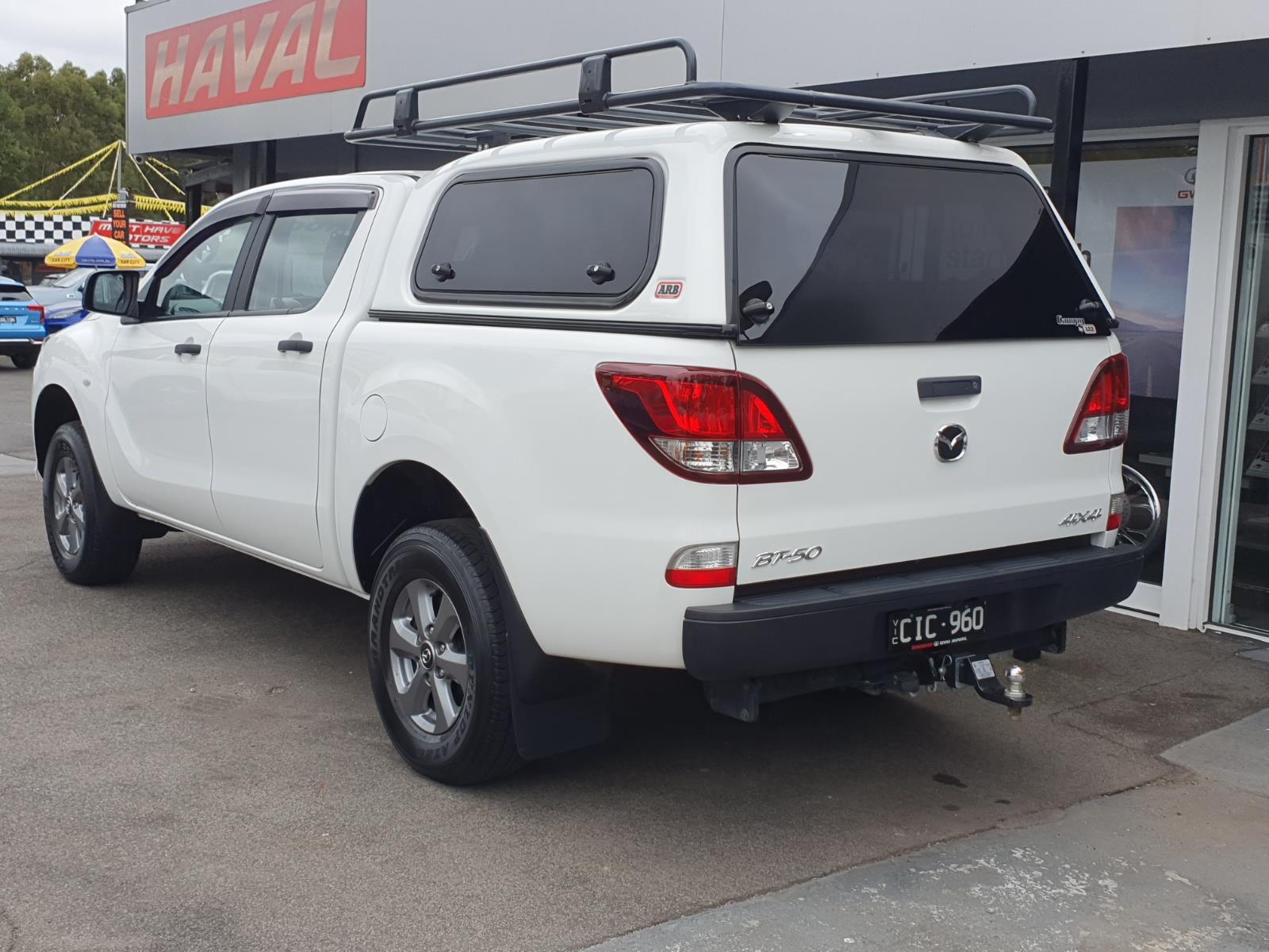 Quality late model 1 owner Mazda BT-50 XT 4x4 Auto with the powerful 3.2 litre 5 cylinder turbo diesel that comes with service history and 2 keys. This truck is ready to work and comes fitted with a quality ARB canopy with lift up windows that is reinforced to take it's trade rack, and is also fitted with a tow bar, tub liner and weather shields. The 3.2 litre turbo diesel has a great reputation for reliability and is known for its' grunt with 147KW and 470NM of torque and is popular in towing circles for it's 3500kg capacity. Packed full great features including; reverse camera, 16" alloys, aftermarket Alpine radio with Apple Car Play, USB/AUX, cruise control, diff locks, full size spare wheel, 6 airbags, ESC and more. This Low kilometre truck represents great value and will be sure to sell fast, so be quick