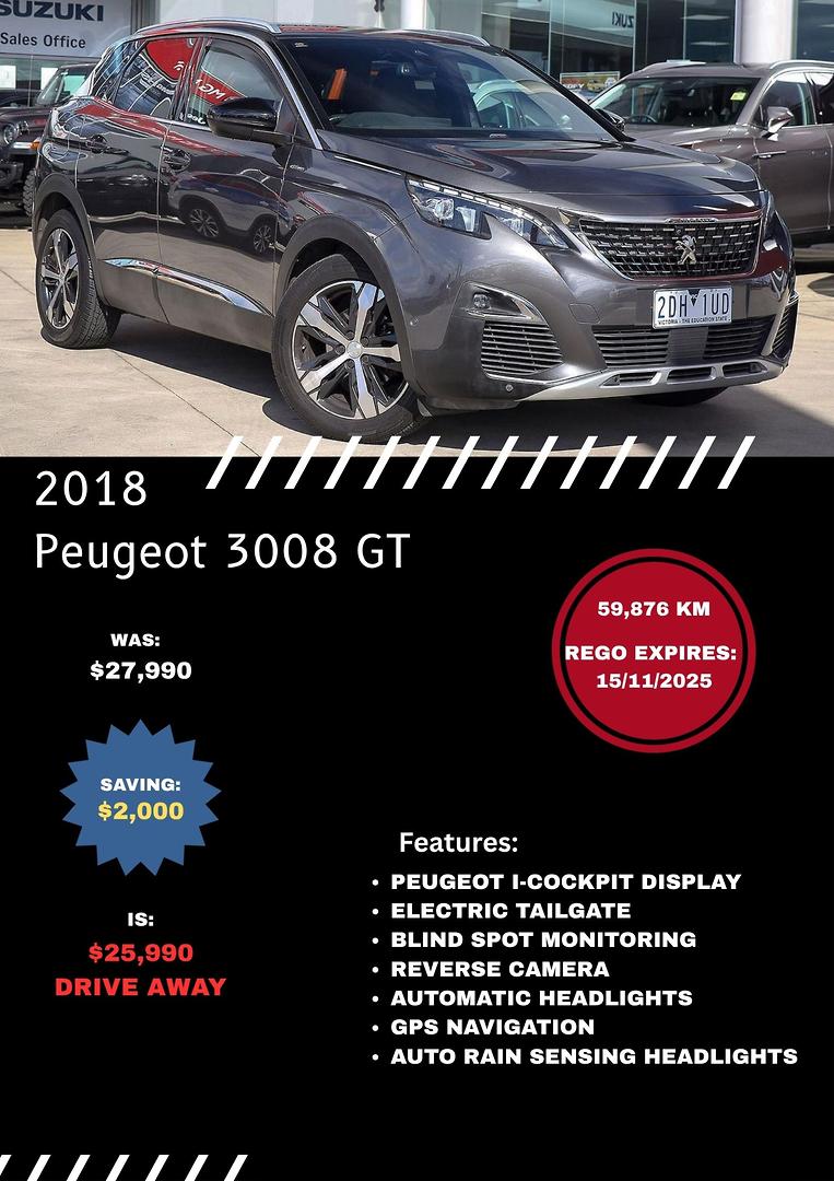 *** HAVE A LOOK AT THIS, EUROPEAN LUXURY WITHOUT THE PRICE TAG AND GREAT KM'S! IT'S OUR 2018 PEUGEOT 3008 GT-LINE IN GREY!
