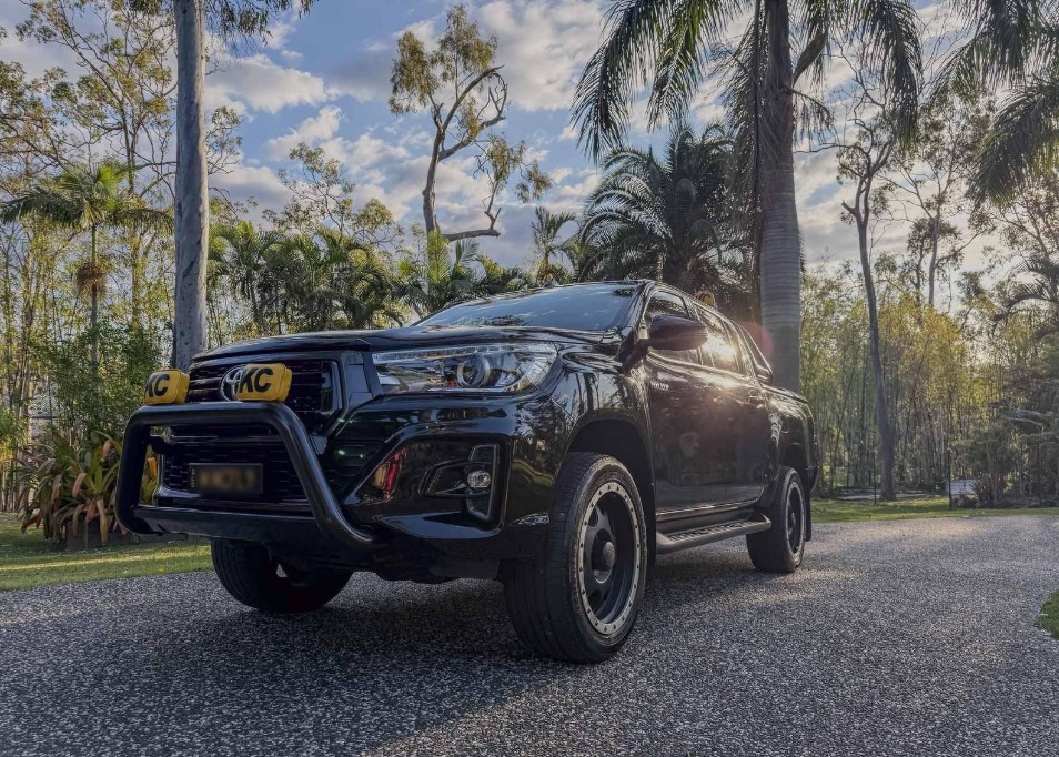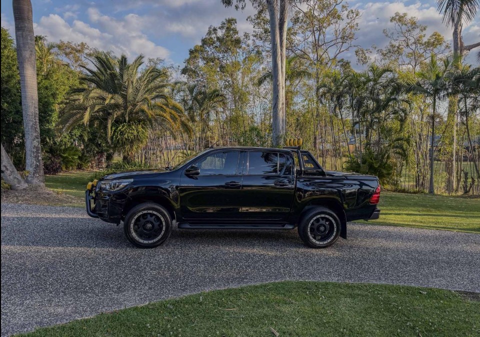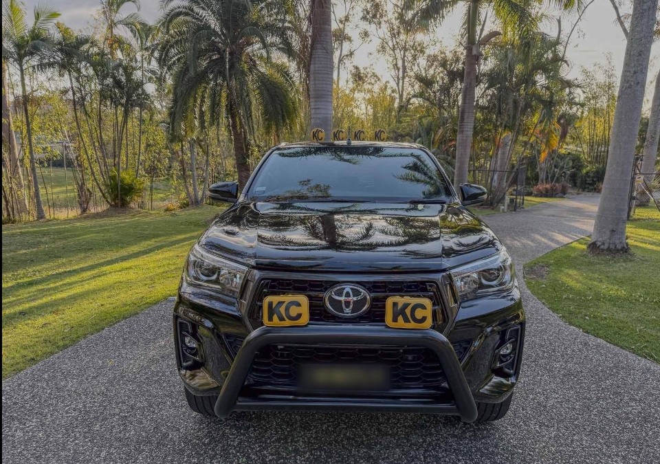 This Toyota Hilux Rogue has 3200kg braked and 750kg unbraked towing capacity. It has 7 airbags fitted for your safety with an ANCAP safety rating of 5. This gorgeous Ute has never been off road! Purchased brand new (one owner), Toyota professionally fitted the light bar and nudge bar for the KC hilites - Pro 6 on roof and 3x4" fog lights (I imported them from USA) on nudge bar. These have their own switch/wiring done by Toyota. Excellent runner, majority of servicing done at Toyota dealerships. KMC XD series 20" rims with Michelin tyres. Comes with EVC throttle control that you can customise/activate when the need is felt. 4X4, leather interior, removable tow bar, black Pro6 plastic light covers and 3x4 vinyl fog light covers when you want to switch from the yellow retro vinyl covers. Everything works, always garaged. Eclipse black has a beautiful green and blue fleck through the paint and I take much pride in keeping her well maintained and detailed. Spare fob, keys and service history. Personalised plates extra $ if wanted otherwise will sell sep. Back to the future fans will recognise the nod to the sr5 extra cab but I did base it off the KC x Toyota Tacoma tribute in 2015. Fresh good year tyres, 133,954 kms.